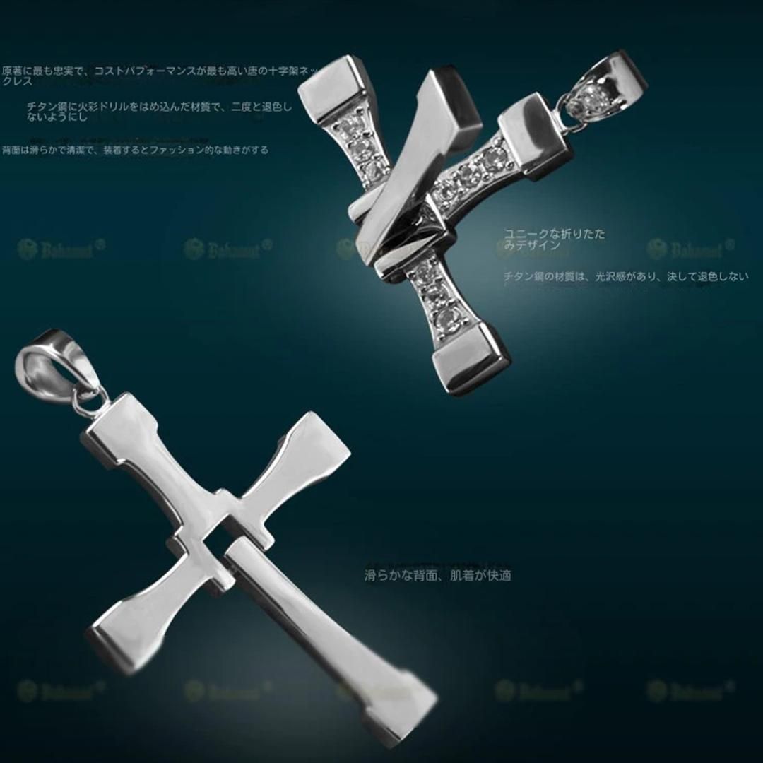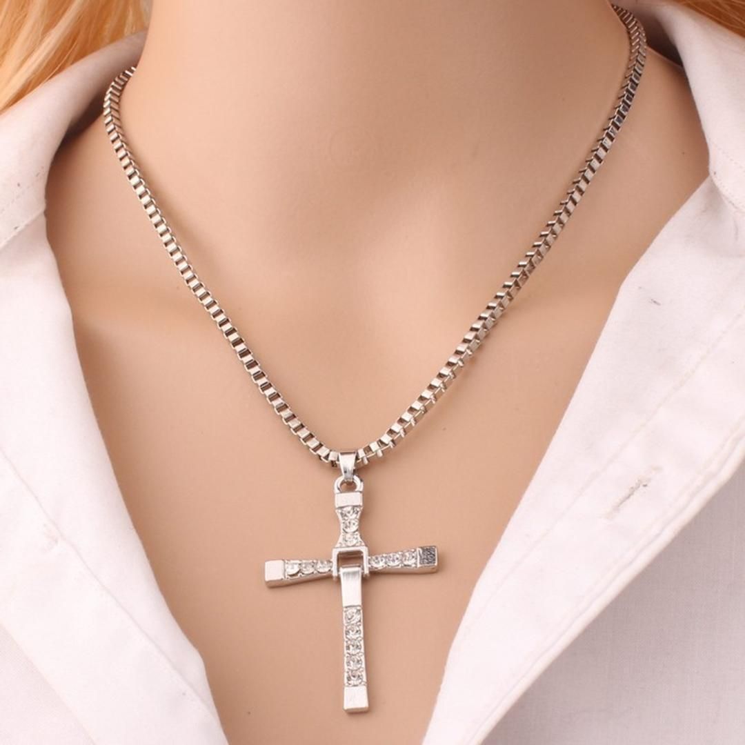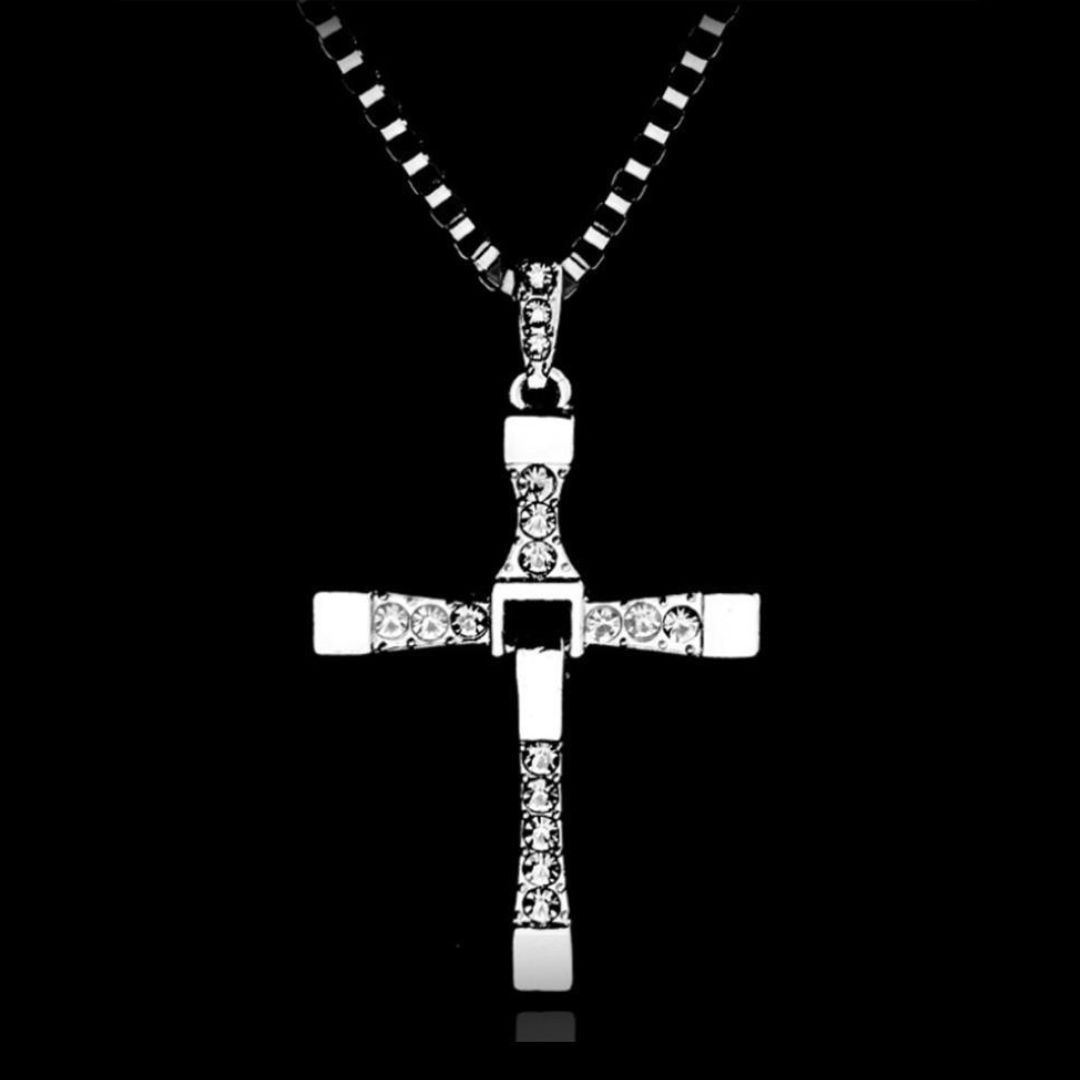 映画『ワイルド・スピード』のドミニク着用モデルを再現した、重厚感溢れるクロスネックレスです。高品質なシルバーの輝きと、十字架の可動式ギミックが特徴。男女問わず、ストリートやワイルドな服装を引き立てます。