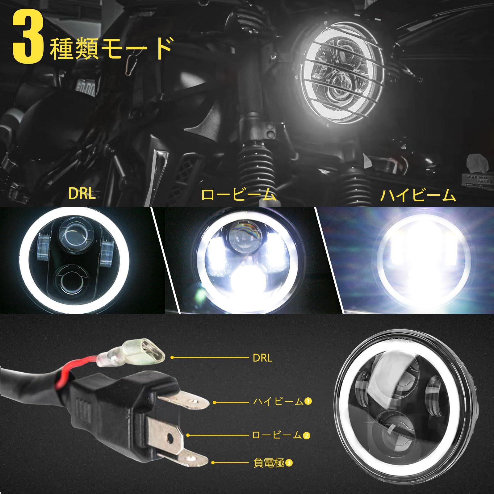 Motikvans5.75インチ LED バイクヘッドライト ホワイトDRL付き Hi/Lo切り替え オートバイ ヘッドライト ハーレーダビッドソン スポーツスター883nfxsbxl1200x xl1200n対応 丸目ヘッドライト (リング DRL)