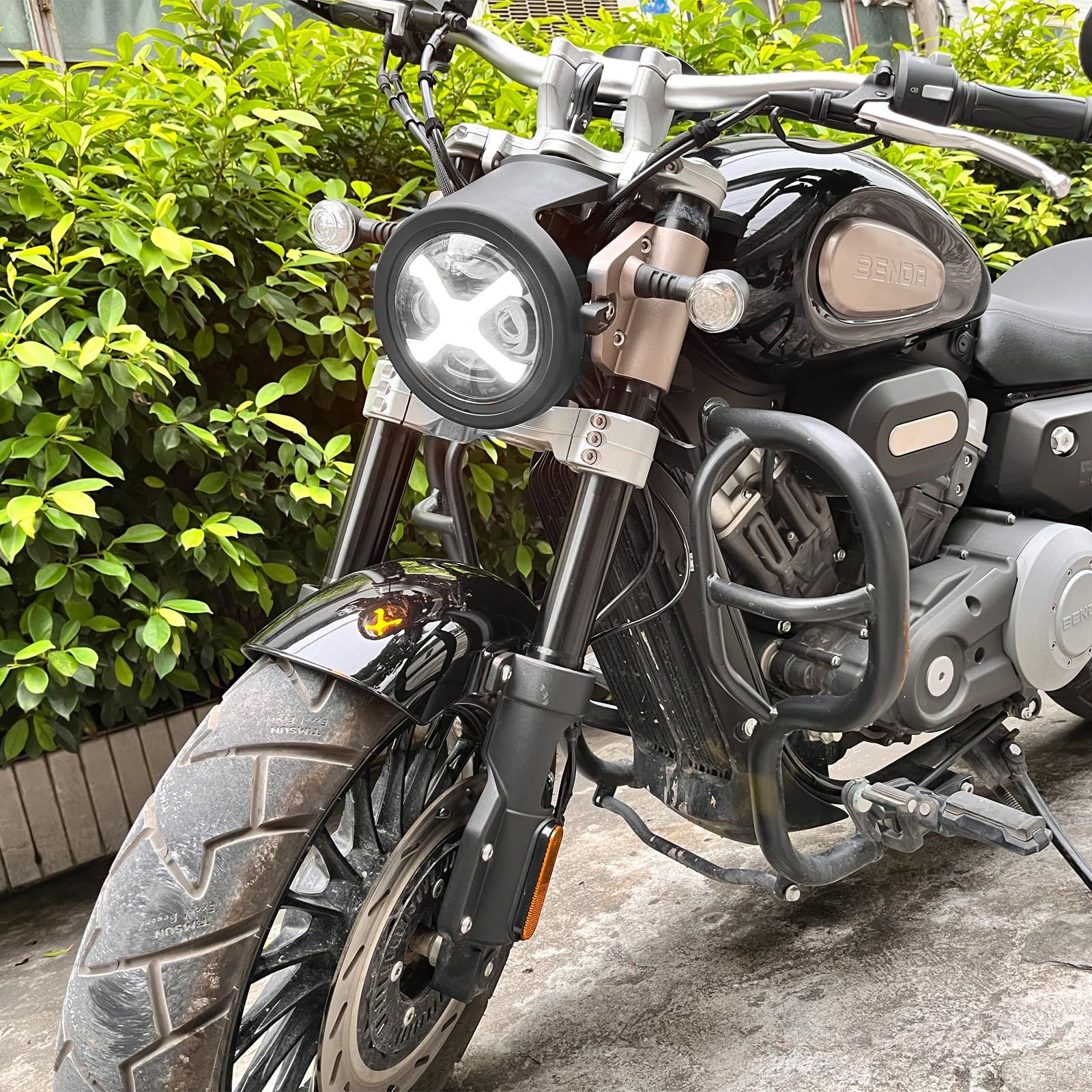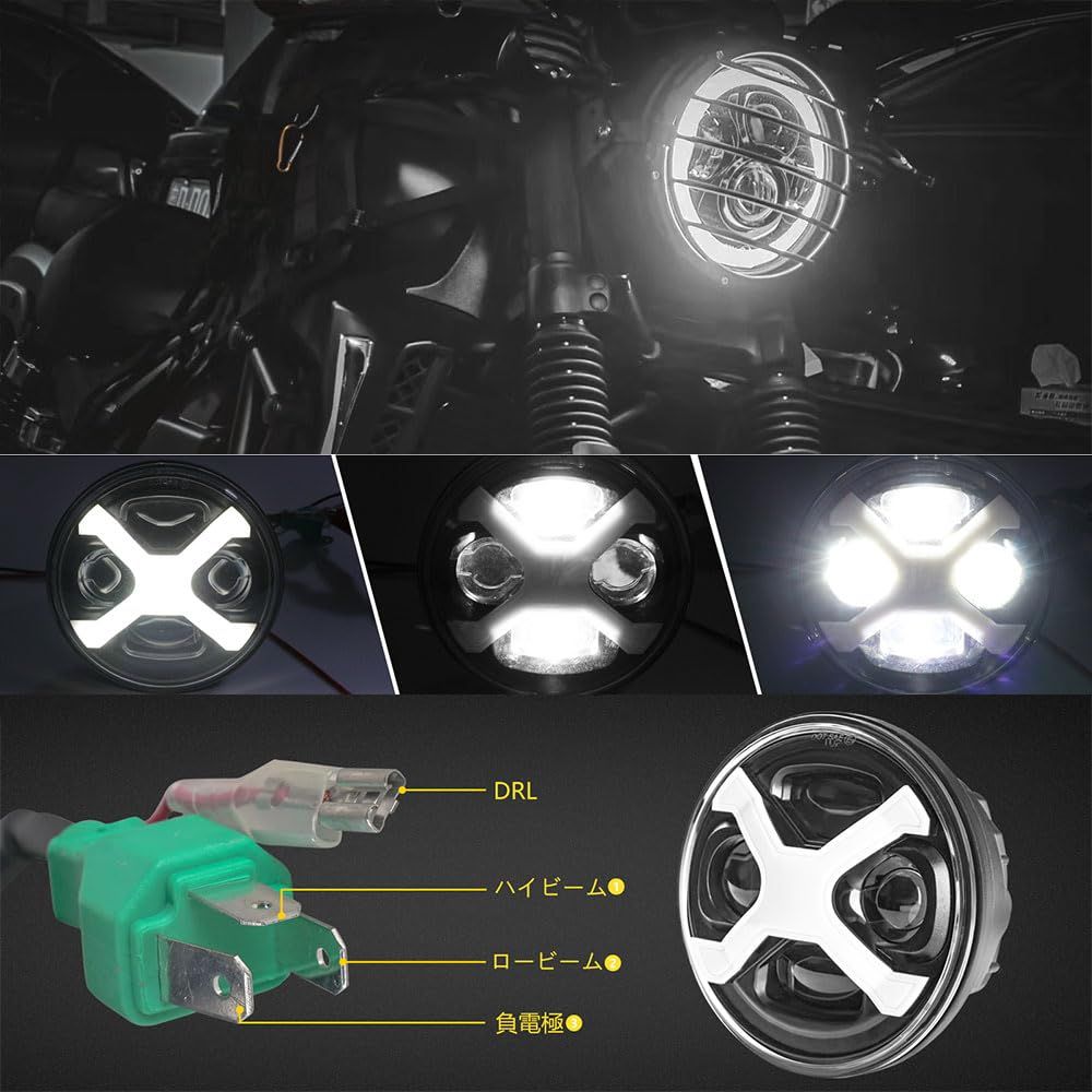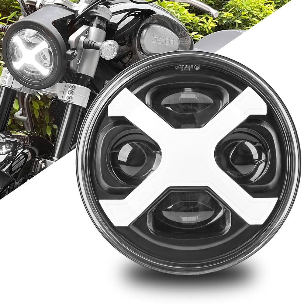 Motikvans5.75インチ LED バイクヘッドライト ホワイトDRL付き Hi/Lo切り替え オートバイ ヘッドライト ハーレーダビッドソン スポーツスター883nfxsbxl1200x xl1200n対応 丸目ヘッドライト (X型DRL)