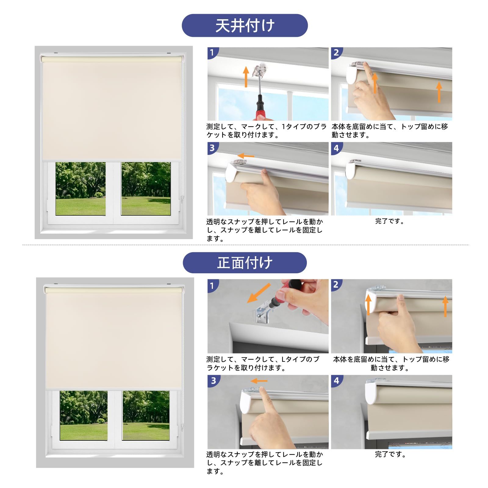 【簡単取り付けと安全性】①取り付け簡単:当社のロールスクリーンは取り付け簡単です。インストールは数分で完了できます。このパッケージには必要なすべての付属品と取り付け説明書が含まれています。②安全設計:ご家族の安全を確保するために、調光ロールスクリーンはすべて壁に固定できる安全装置がついています。