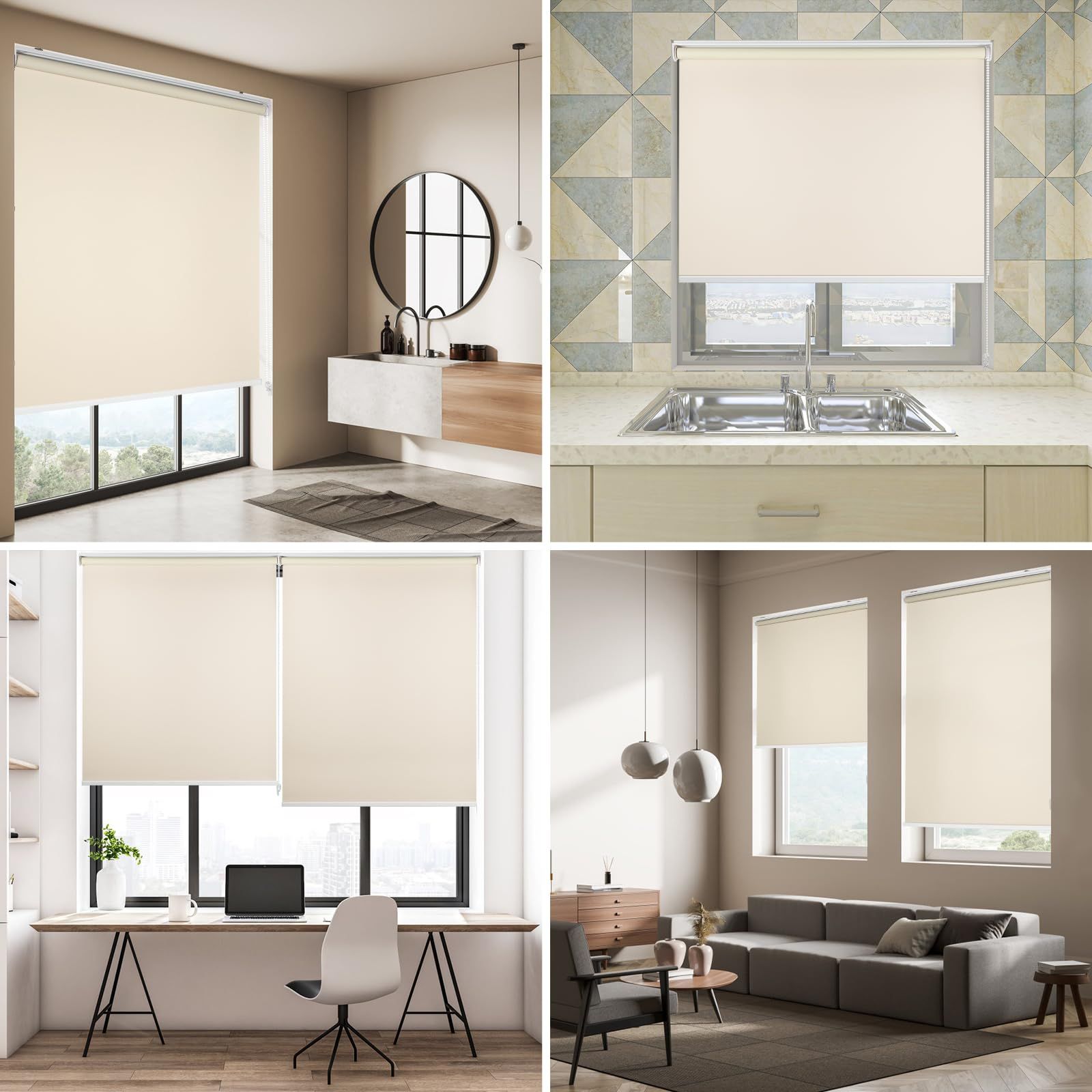 【ブラインドの生地】表面素材:スクリーン:ポリエステル100% ヘッドレール素材:アルミニウム チェーン素材:POM ボトムバー:メタル カラー:ベージュ キッチン、バスルーム、リビング、オフィス、寝室、ガレージ、書斎、託児所、ホテルなどに適しています。