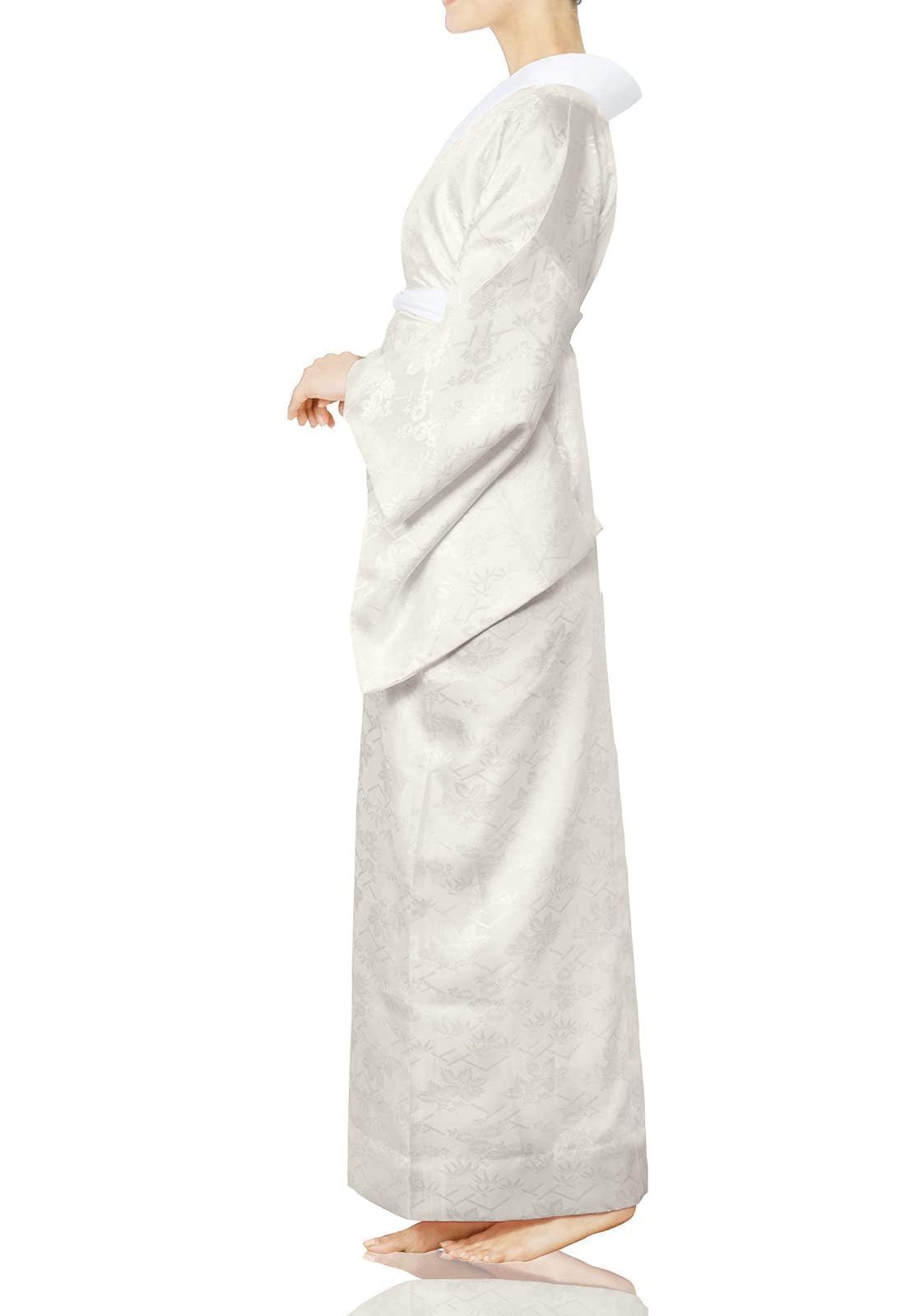 地紋入りの光沢のある生地で女性らしい綺麗な仕上がりに。白/ピンク/藤/グレーの4色ございますので普段使いのお着物だけでなく、礼装や留袖にも対応できます。