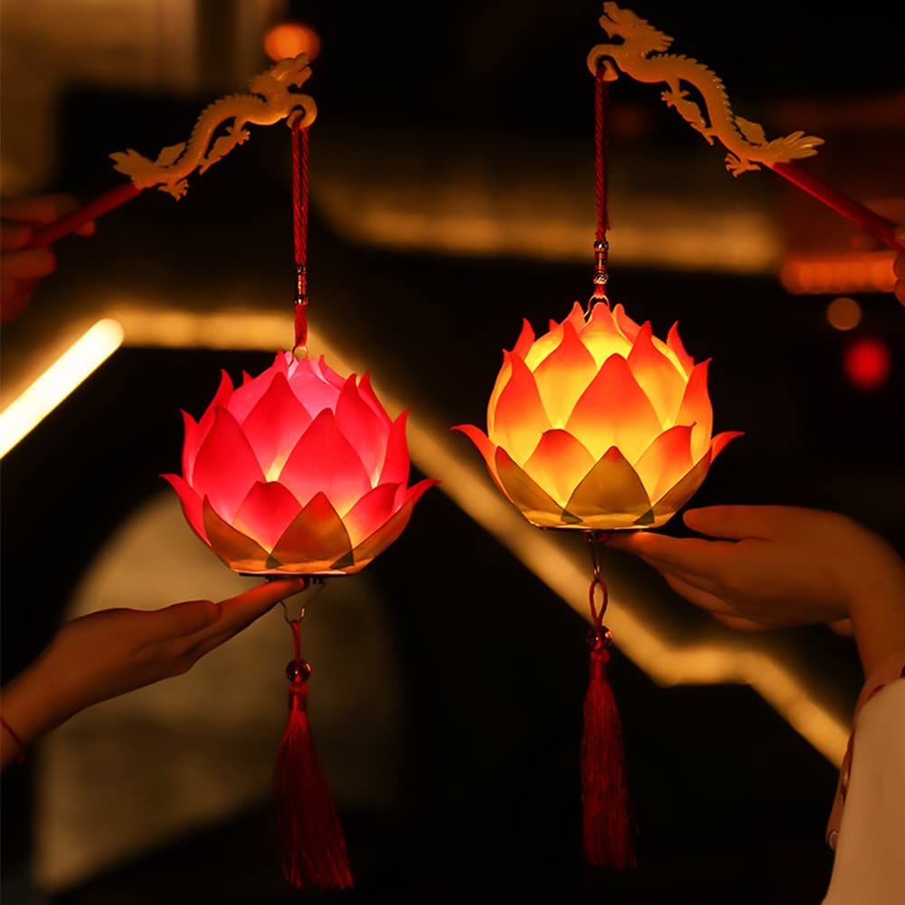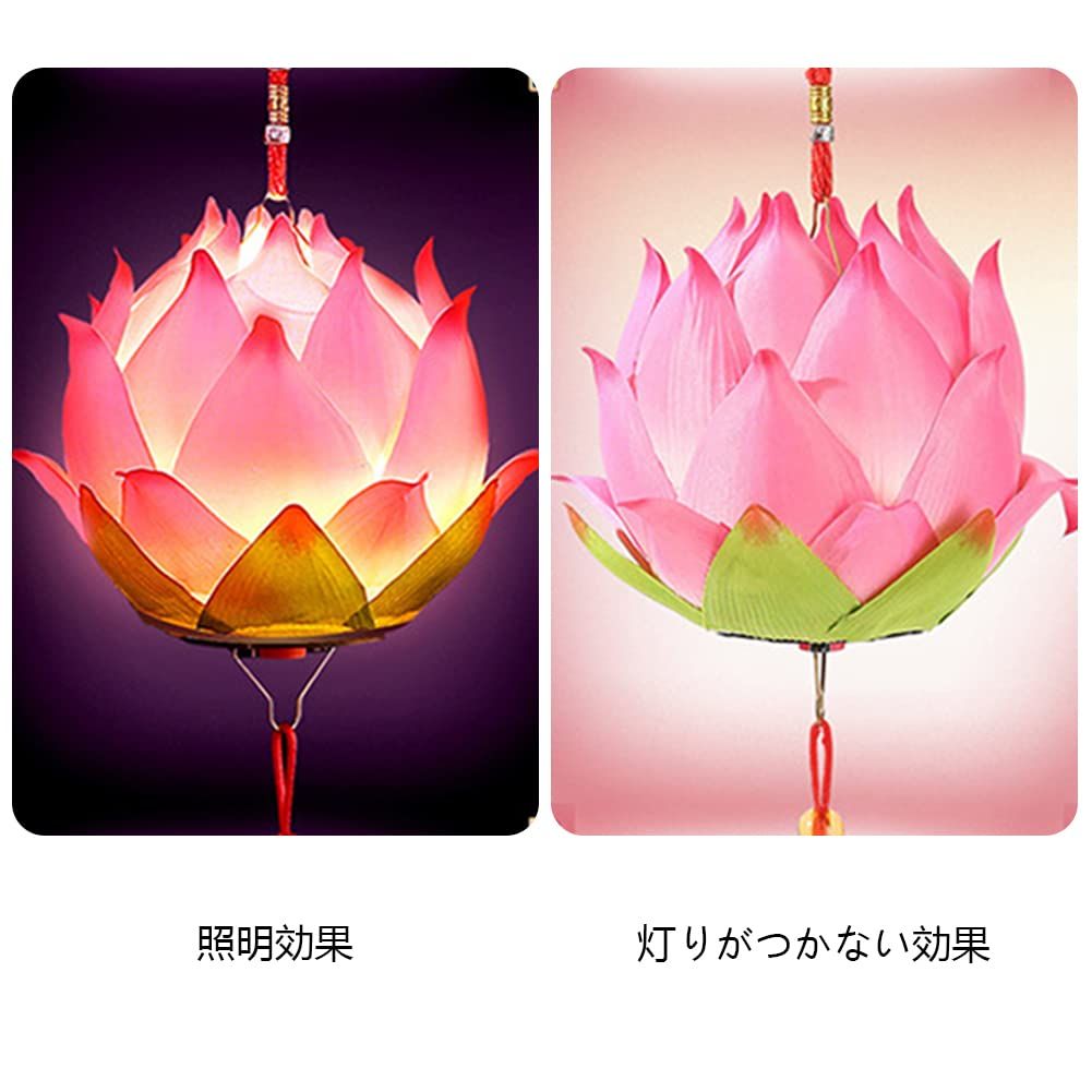YUYAKESHI 提灯 蓮ランプ 蓮 お盆飾り ちょうちん 飾り用 LED 手持ち 蓮提灯 祭り 道具 ライト ランタン ハスの花 可愛い とおる 電池式(ローズレッド)