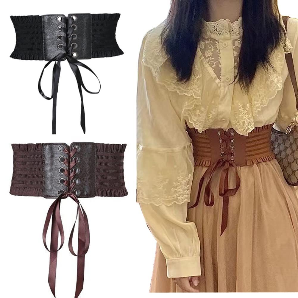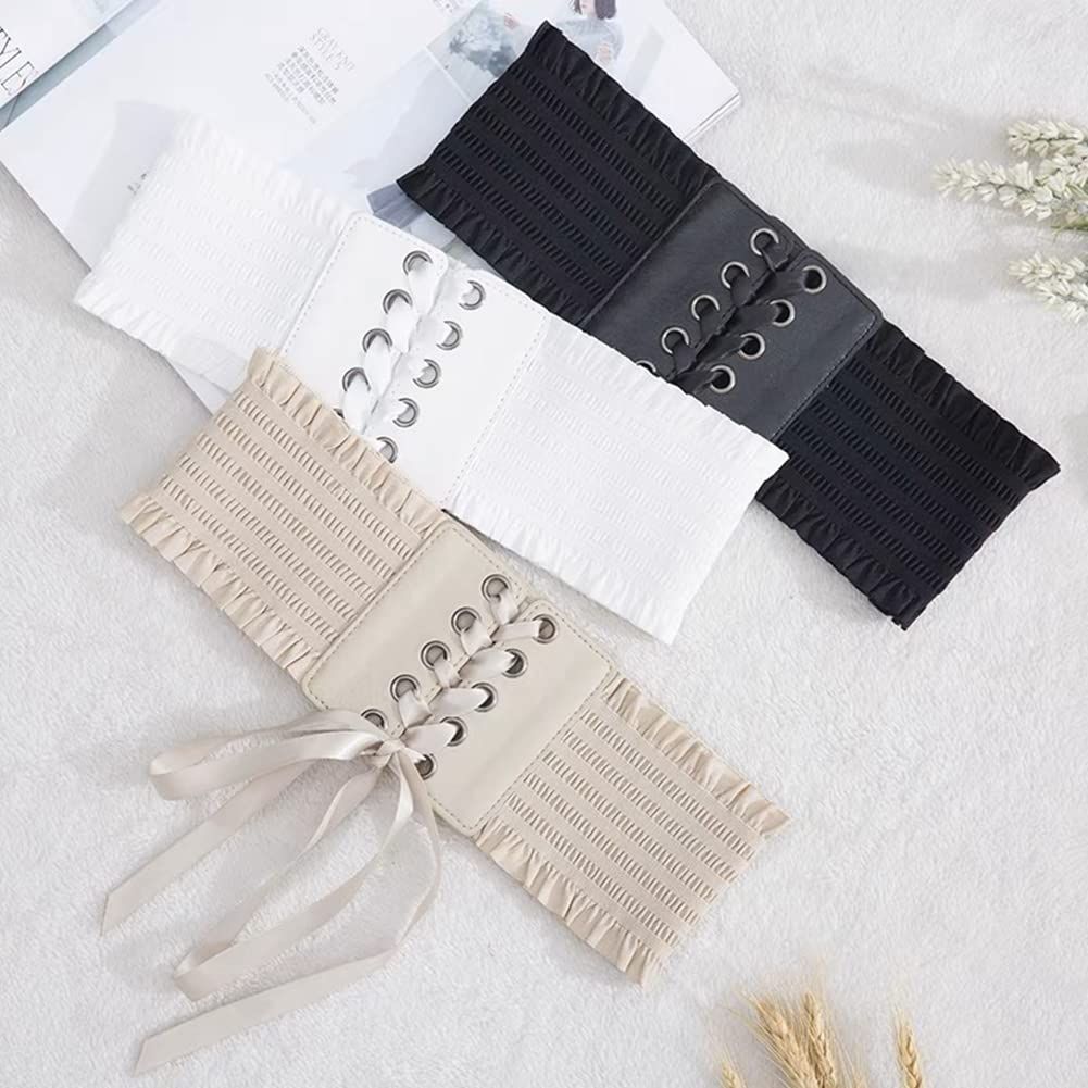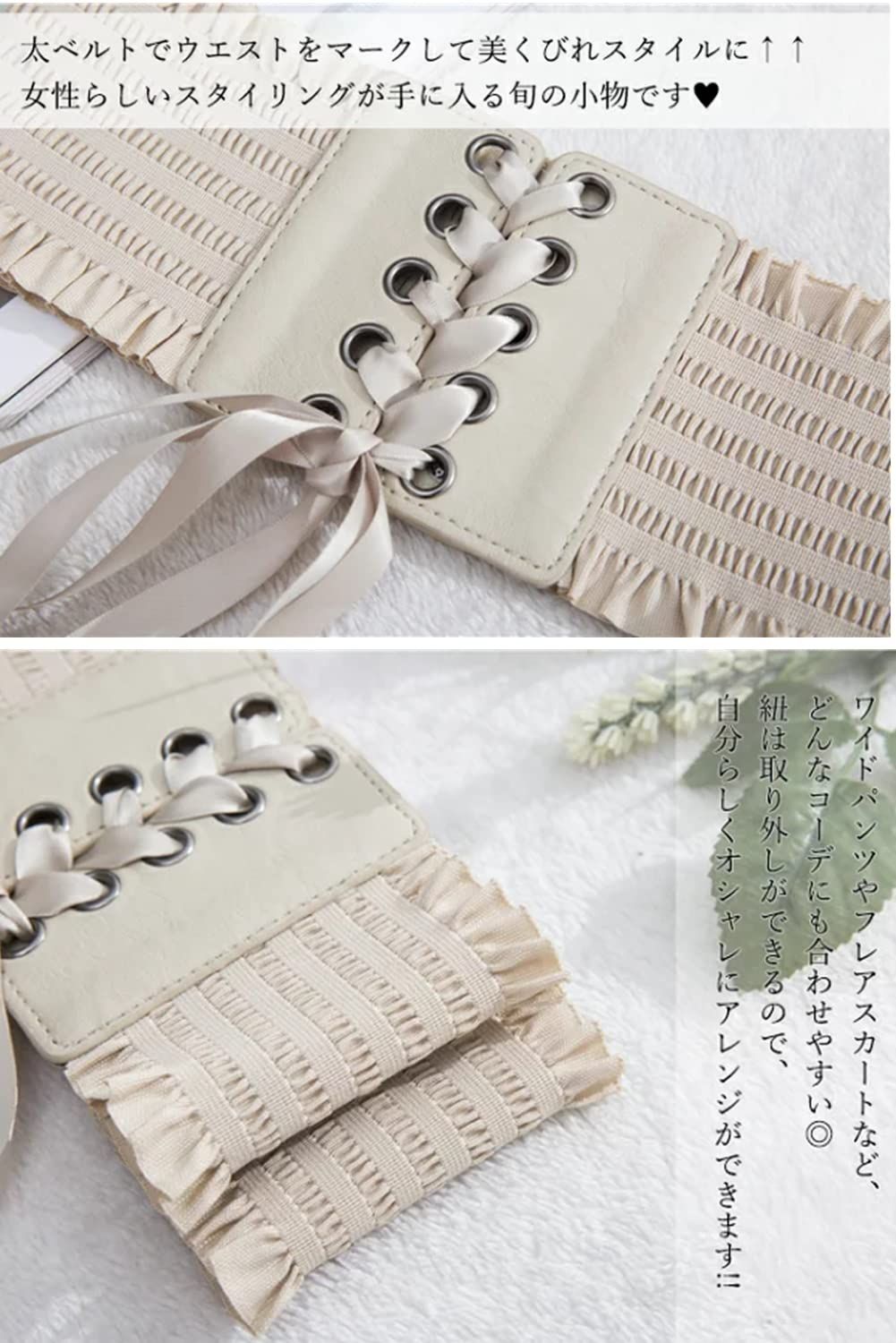 サッシュベルト コルセット ベルト レディース レースアップ ゴム リボン ワイドベルト レザー フェイクレザー 太ベルト ゴムベルト 太 伸びる フリル付き スナップボタン付き カジュアル おしゃれ