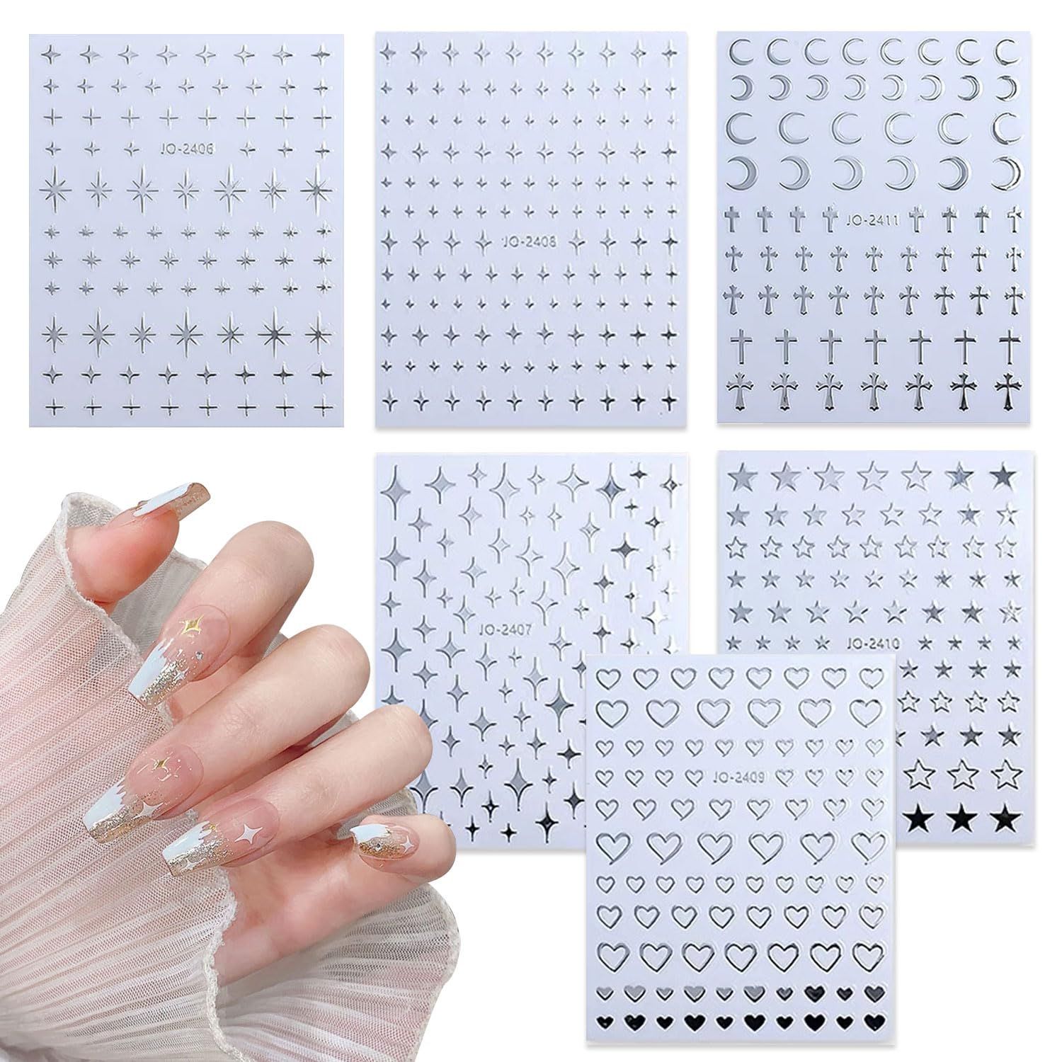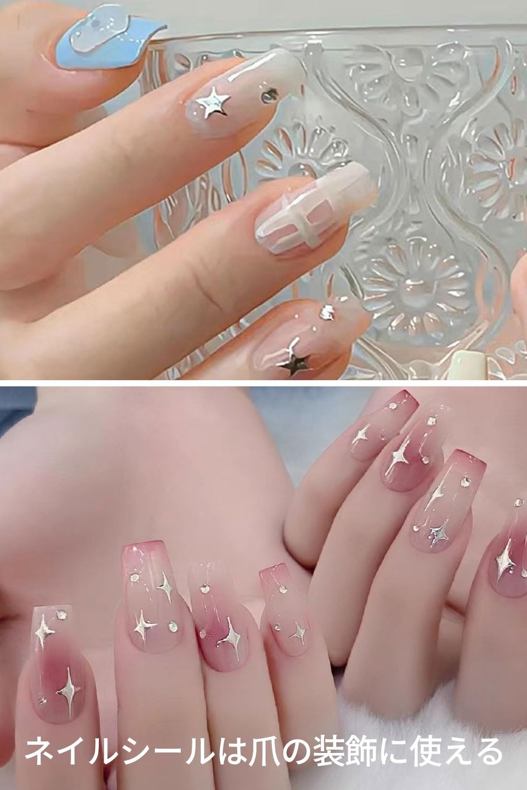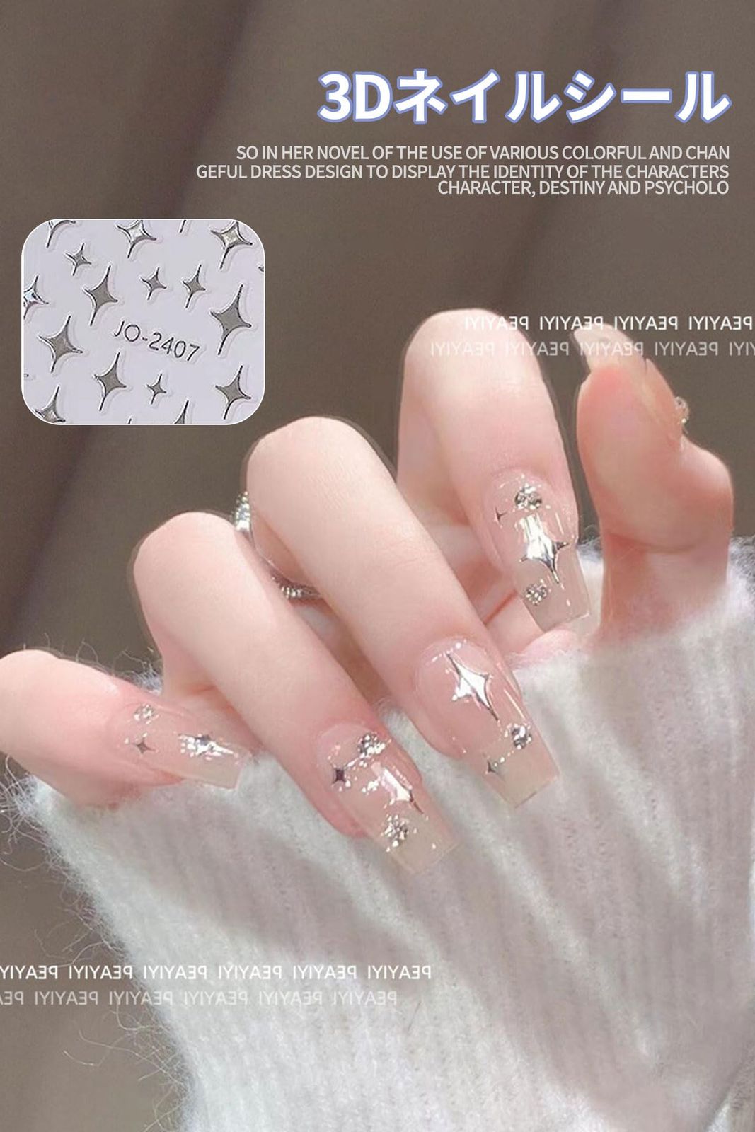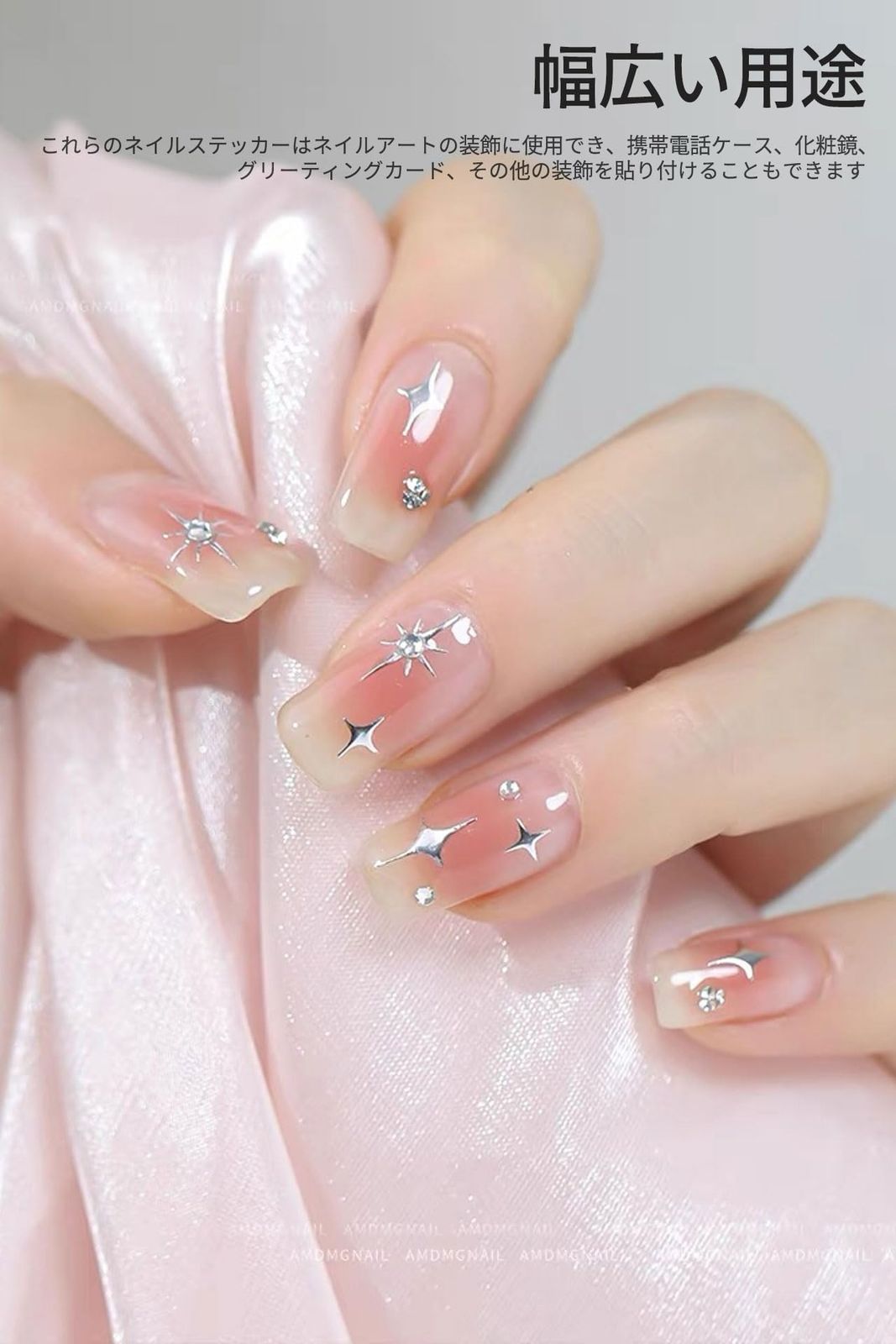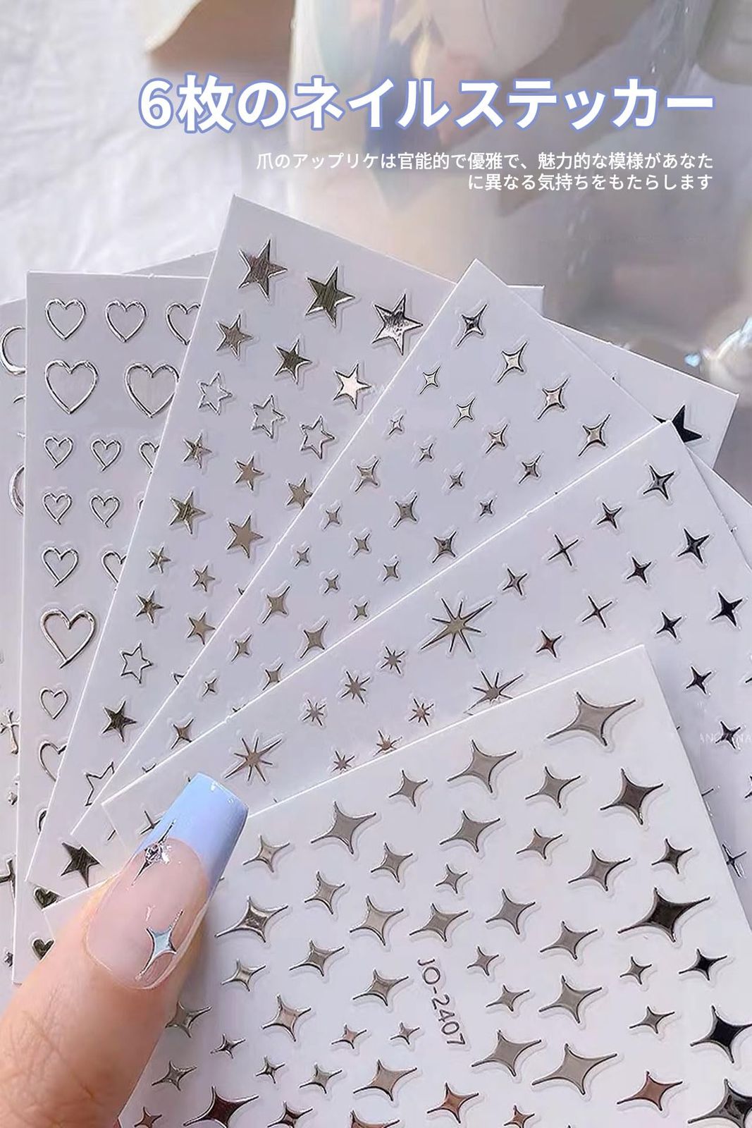 ネイルアートシール ネイルシール キラキラ 6枚 3Dネイルシール スパークリングシルバースター ペーストするだけ ネイルデザインノーダメージ 簡単ネイルアート ファッション