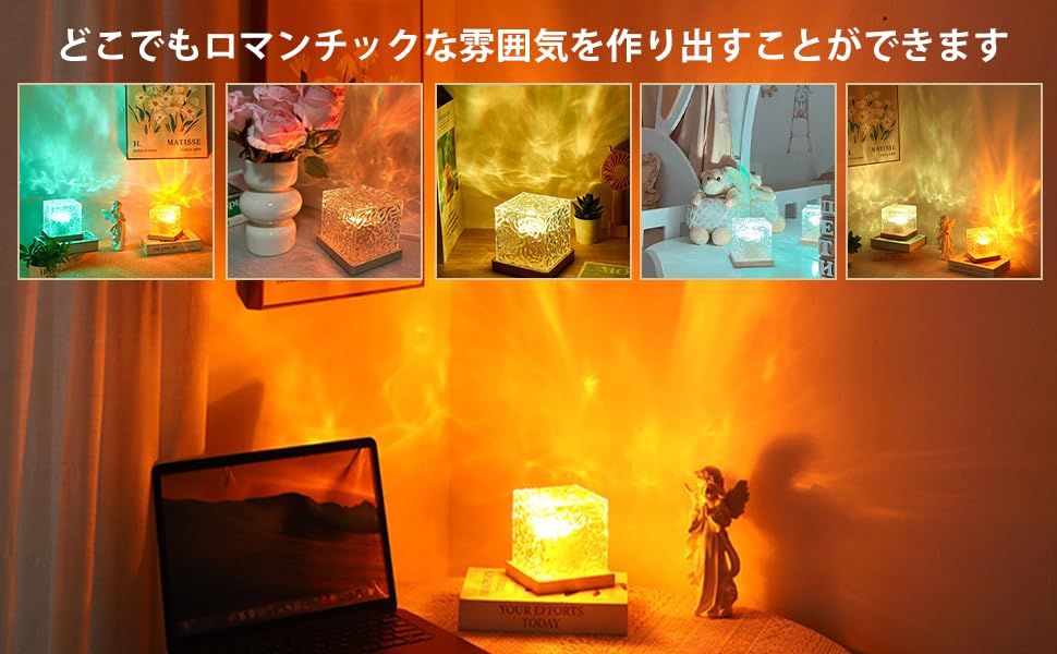 ウォーターランプ 心を落ち着かせるジェネレーター: Celestial Water Lamp で平和な空間を高めます。その波紋効果は、リラクゼーションと平和を促進する海のような雰囲気を作り出します。壁や天井を魅惑的なオアシスに変え、長い一日の後にくつろぐのに最適です。