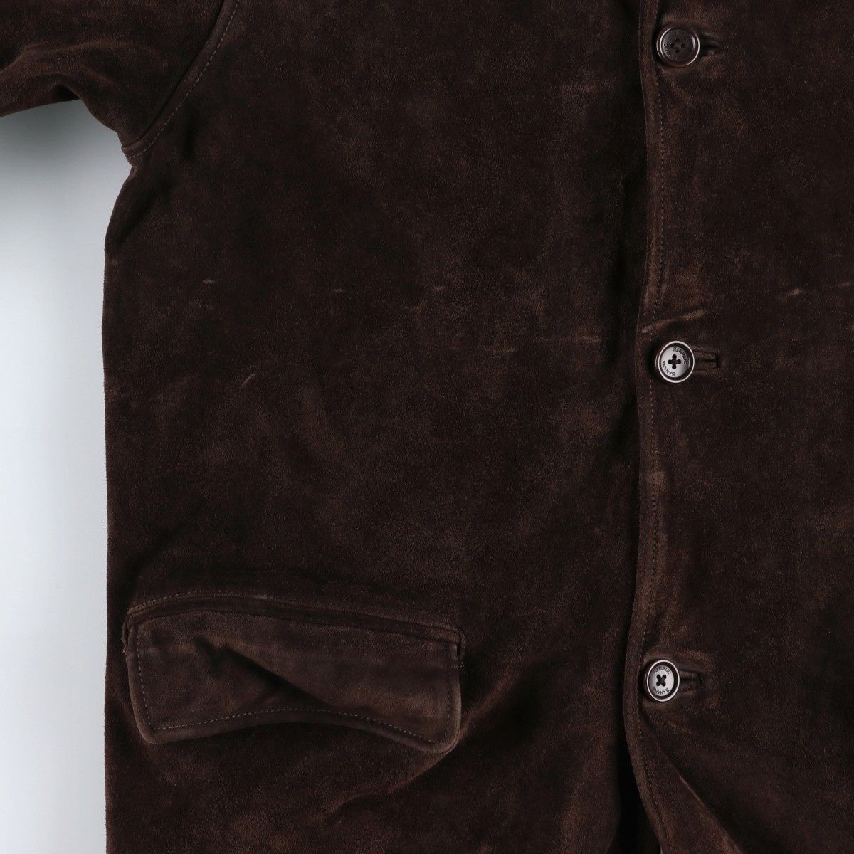 特徴:長袖 / フルボタン / ハーフ丈 / スエードレザー
