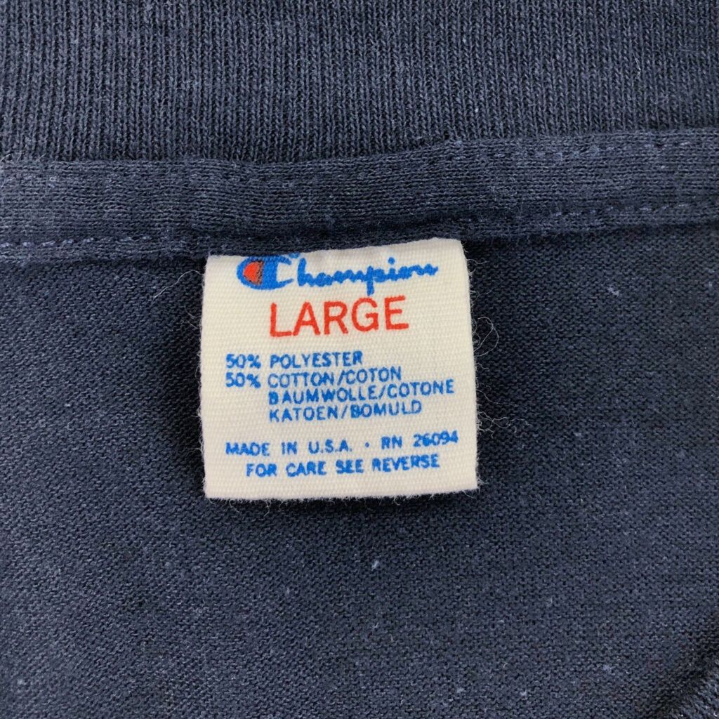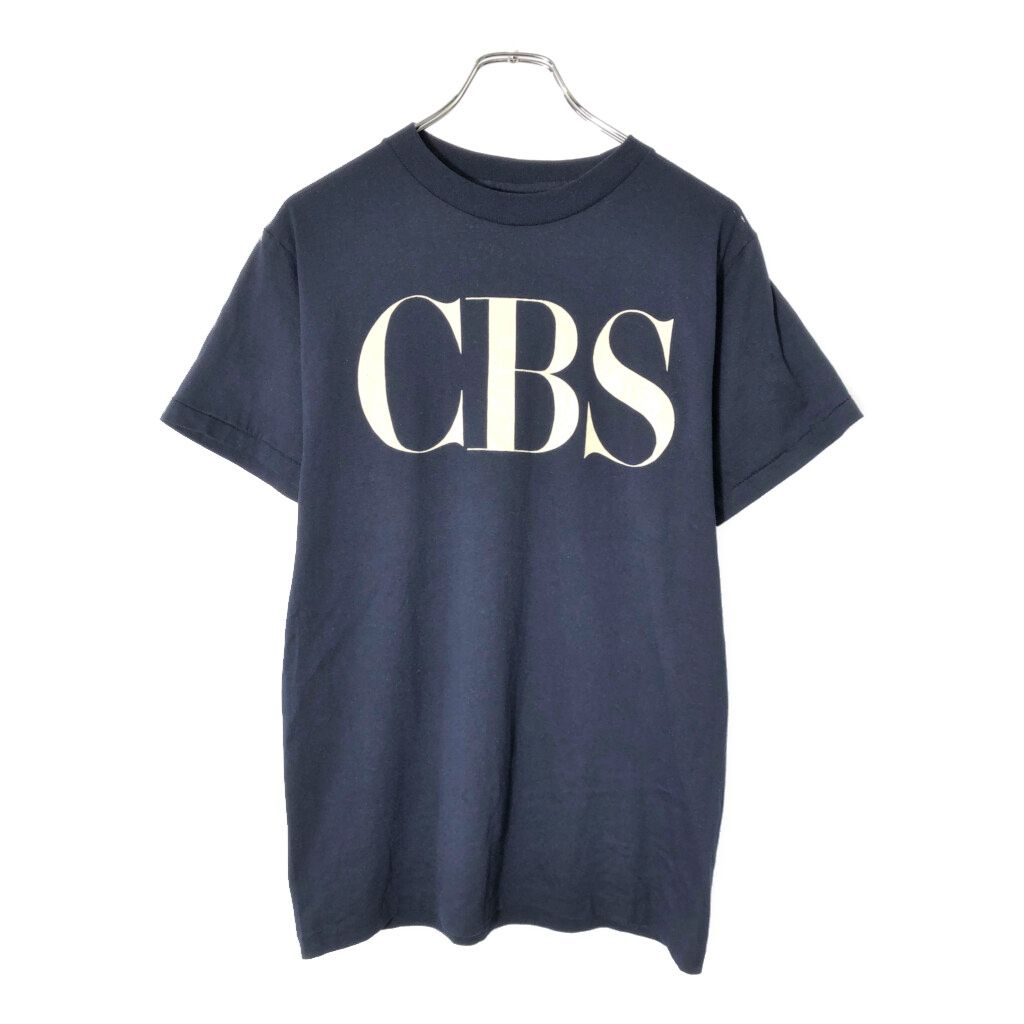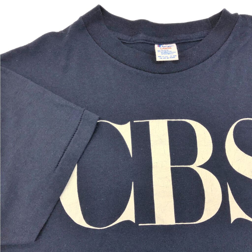 80年代 USA製 Champion チャンピオン CBS 企業ロゴ Tシャツ ネイビー(メンズ LARGE)中古 古着 V9125
