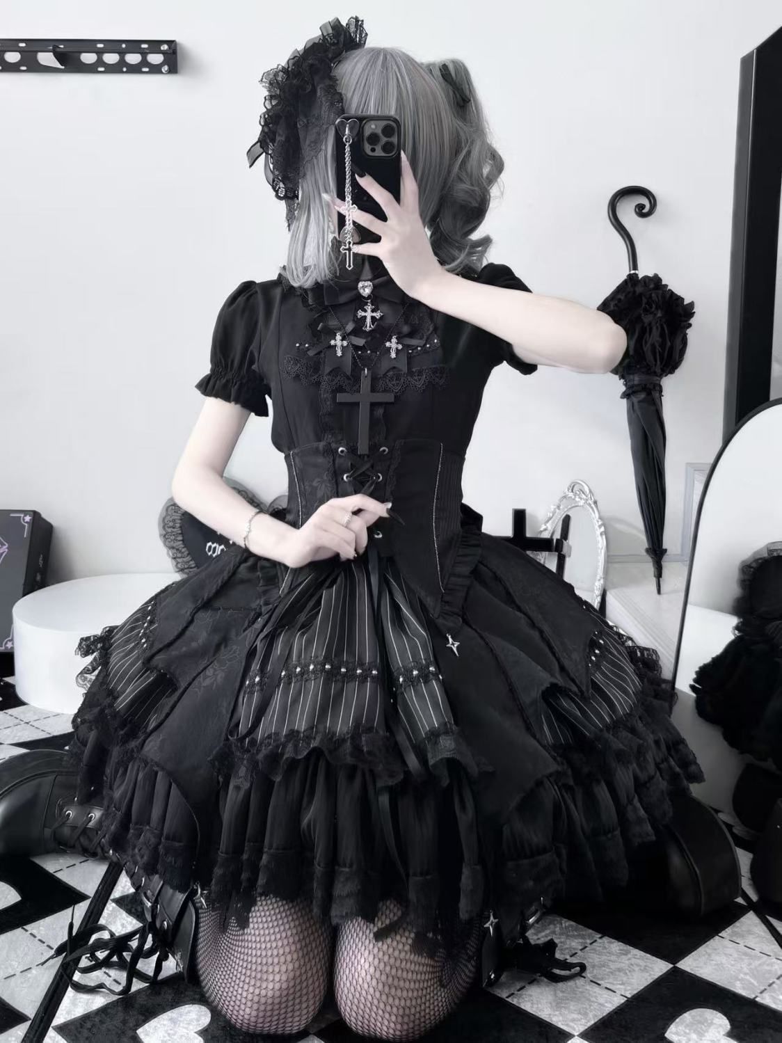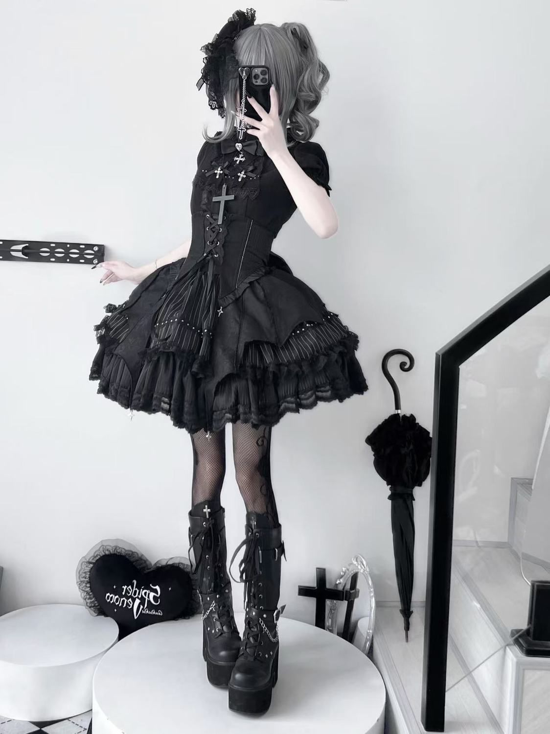 新品 ダークゴシック ステージ衣装 ハイウエストミニスカート地雷系 ギャル系 量産型 舞台衣装 フリル リボン パンクスカート 卒業式入学式 成人式 同窓会 lolita 姫ロリ 甘ロリ リボン 可愛い lo43