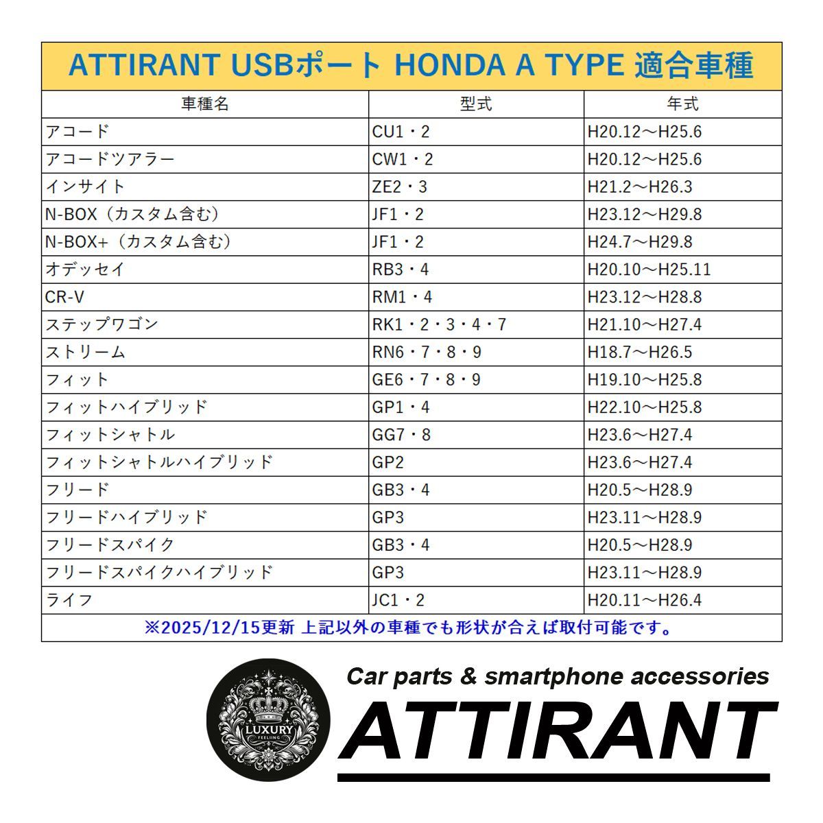 ホン ダAタイプ USB オーディオ+充電 ポート