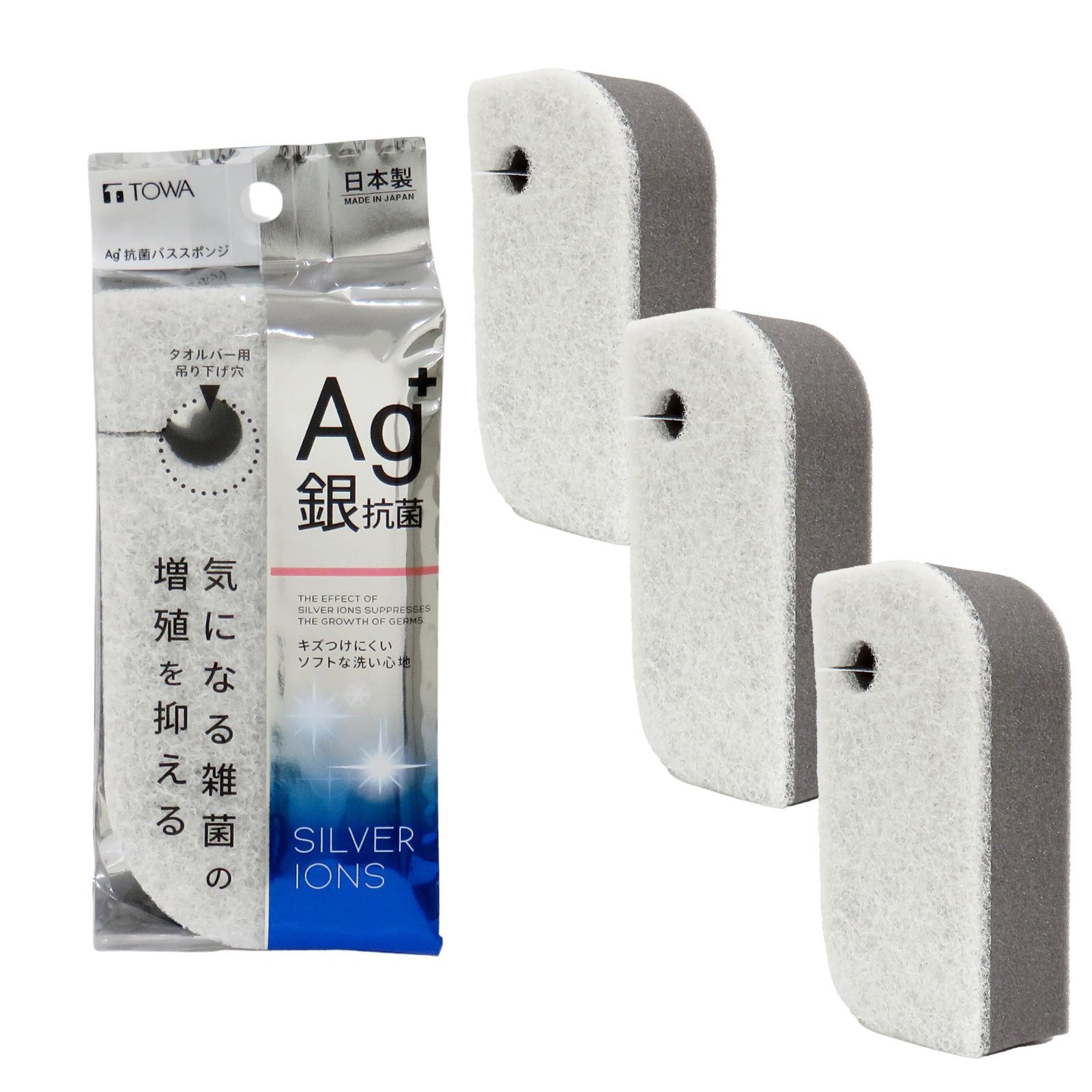 東和産業 スポンジ Ag抗菌 バススポンジ お風呂用スポンジ 雑菌の増殖を抑制 日本製 グレー 約7.6×4.5×15.8cm 3個セット