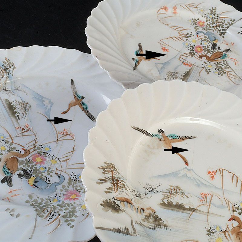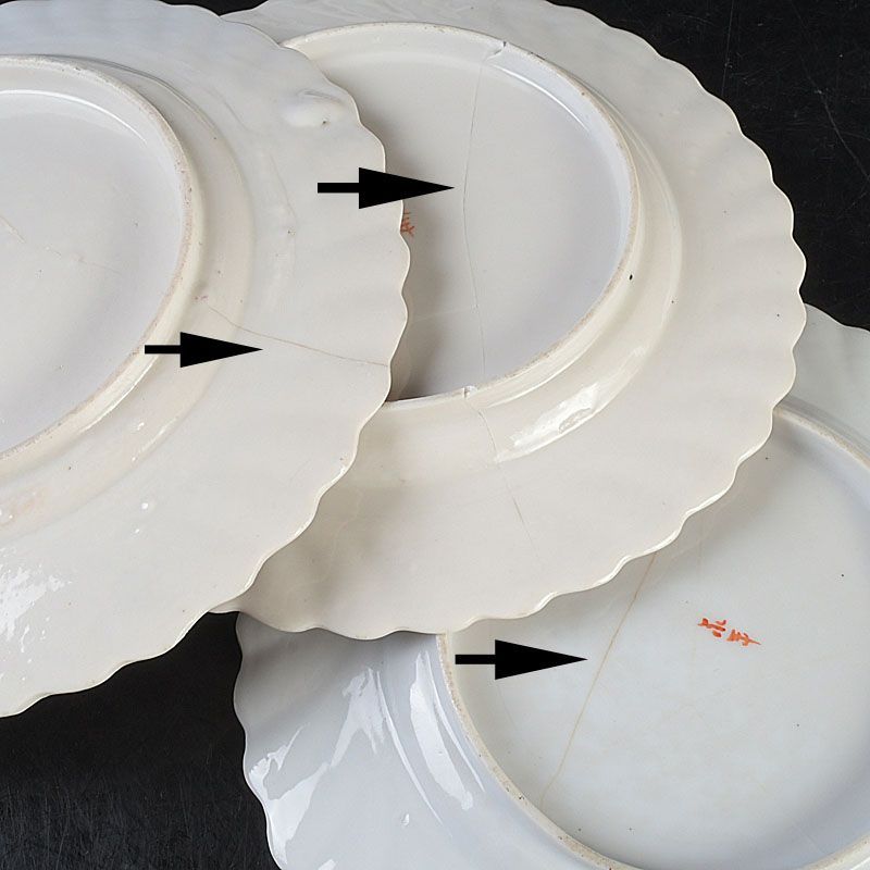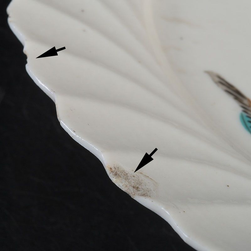 (矢印)複数に欠け、修復箇所が見受けられます。
