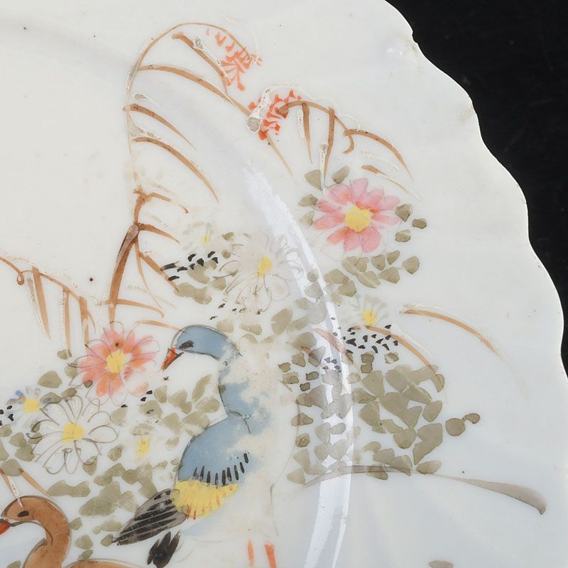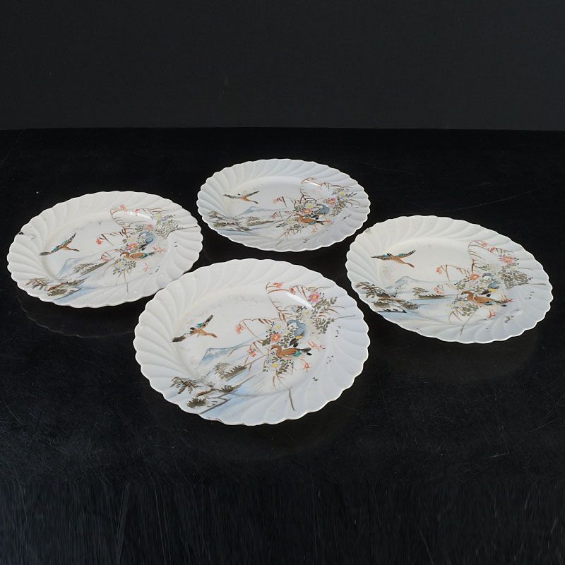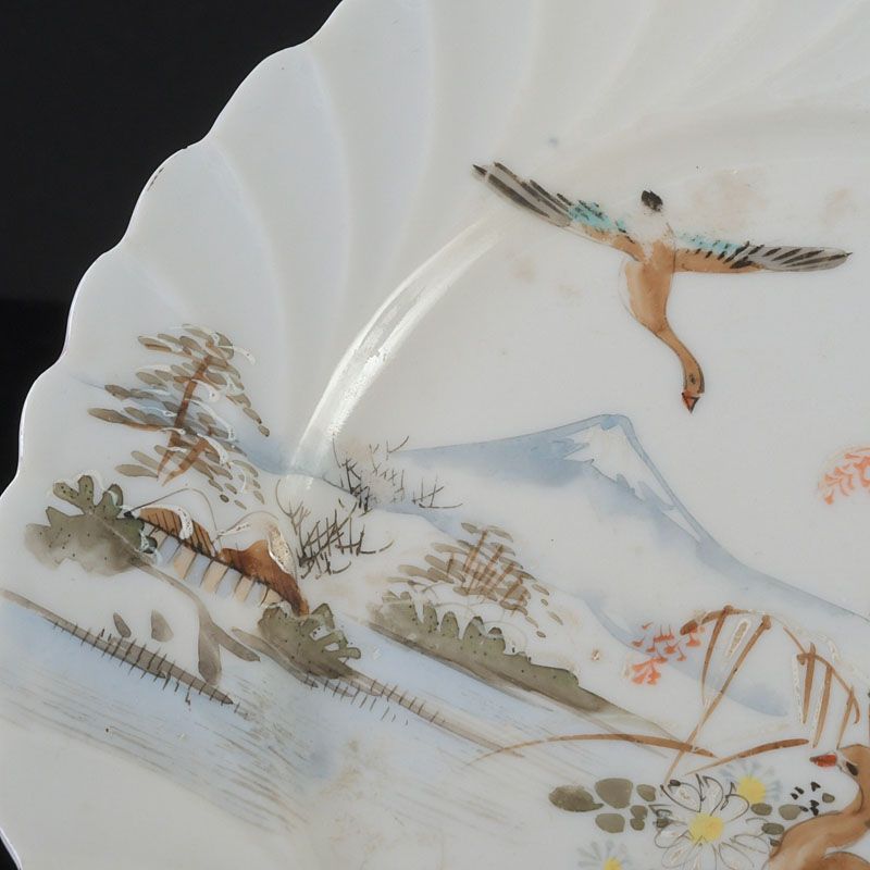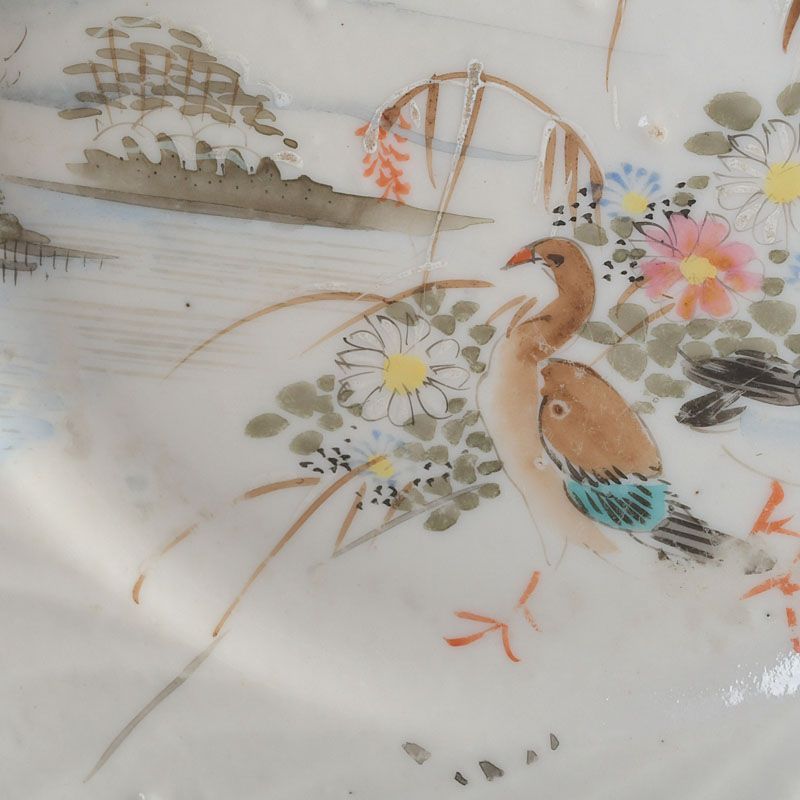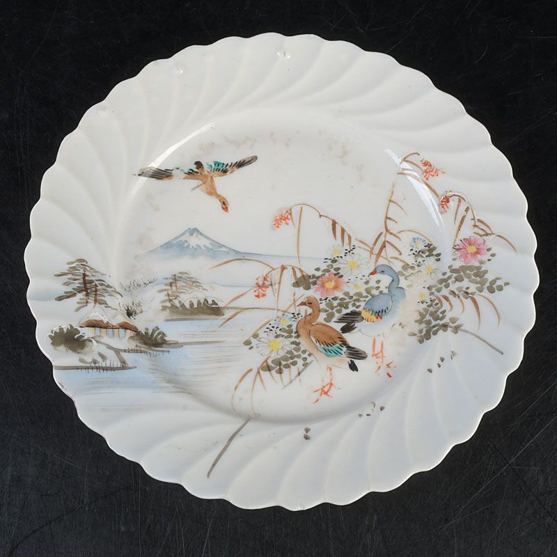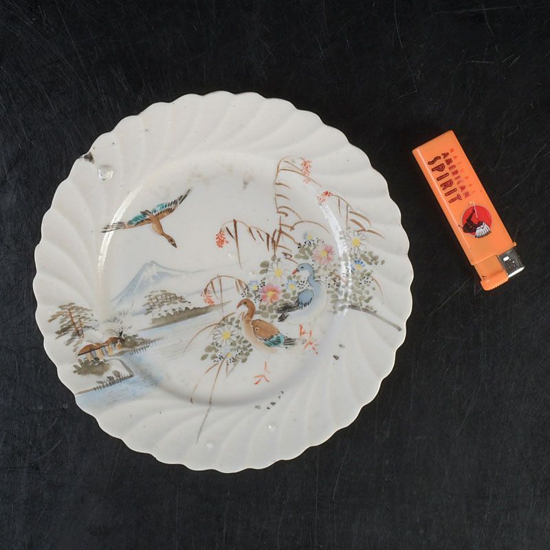 九谷焼 色絵 山水花鳥文 皿 七客 在銘 C S514