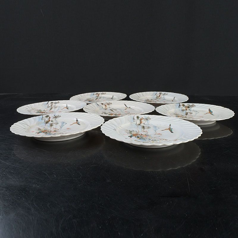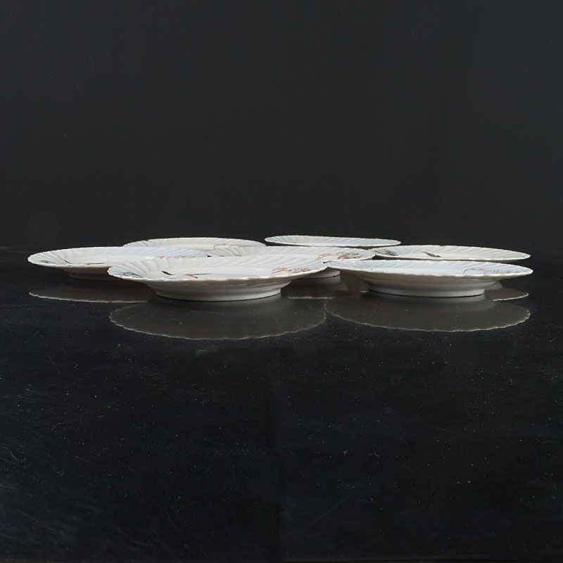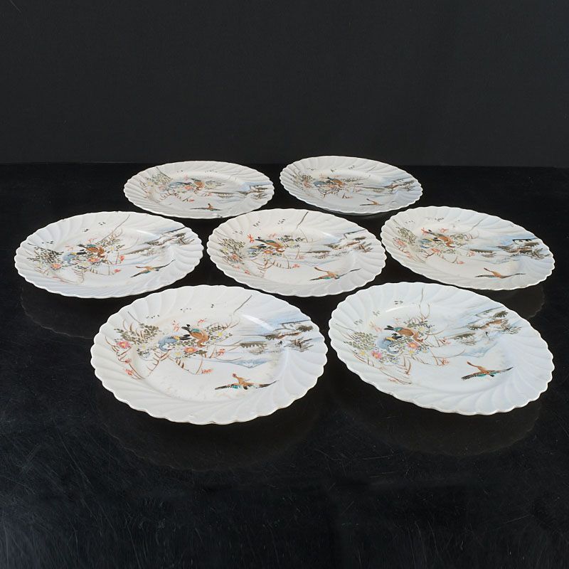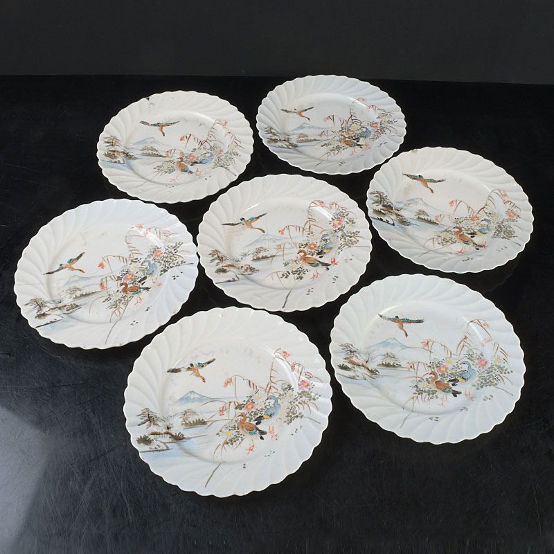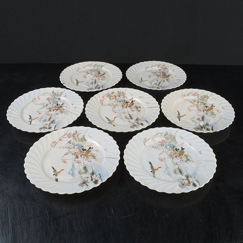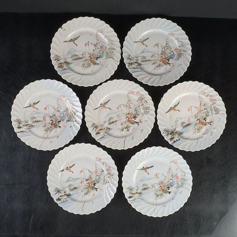 九谷焼 色絵 山水花鳥文 皿 七客 在銘 C S514