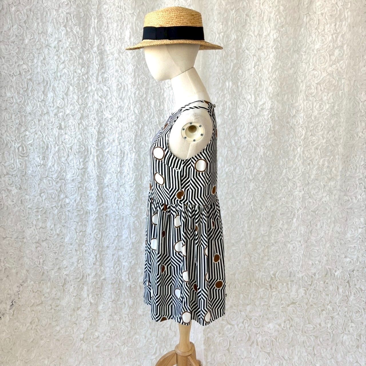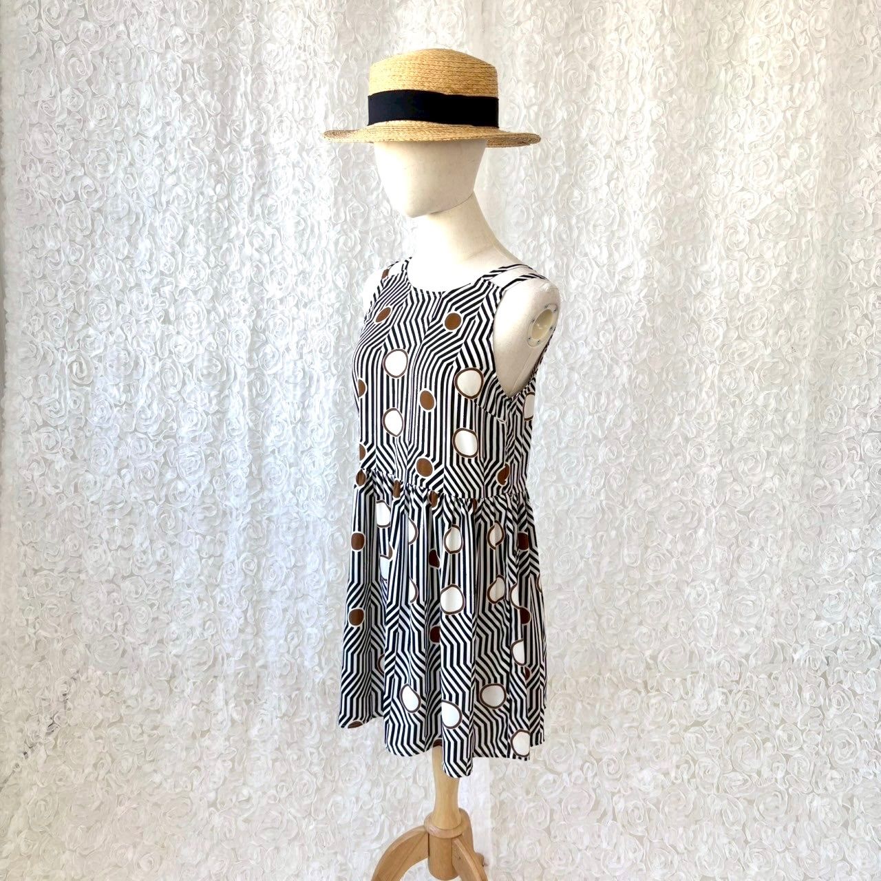すっきりとしたノースリーブに切替デザインで、1枚で主役になるレトロワンピースです。