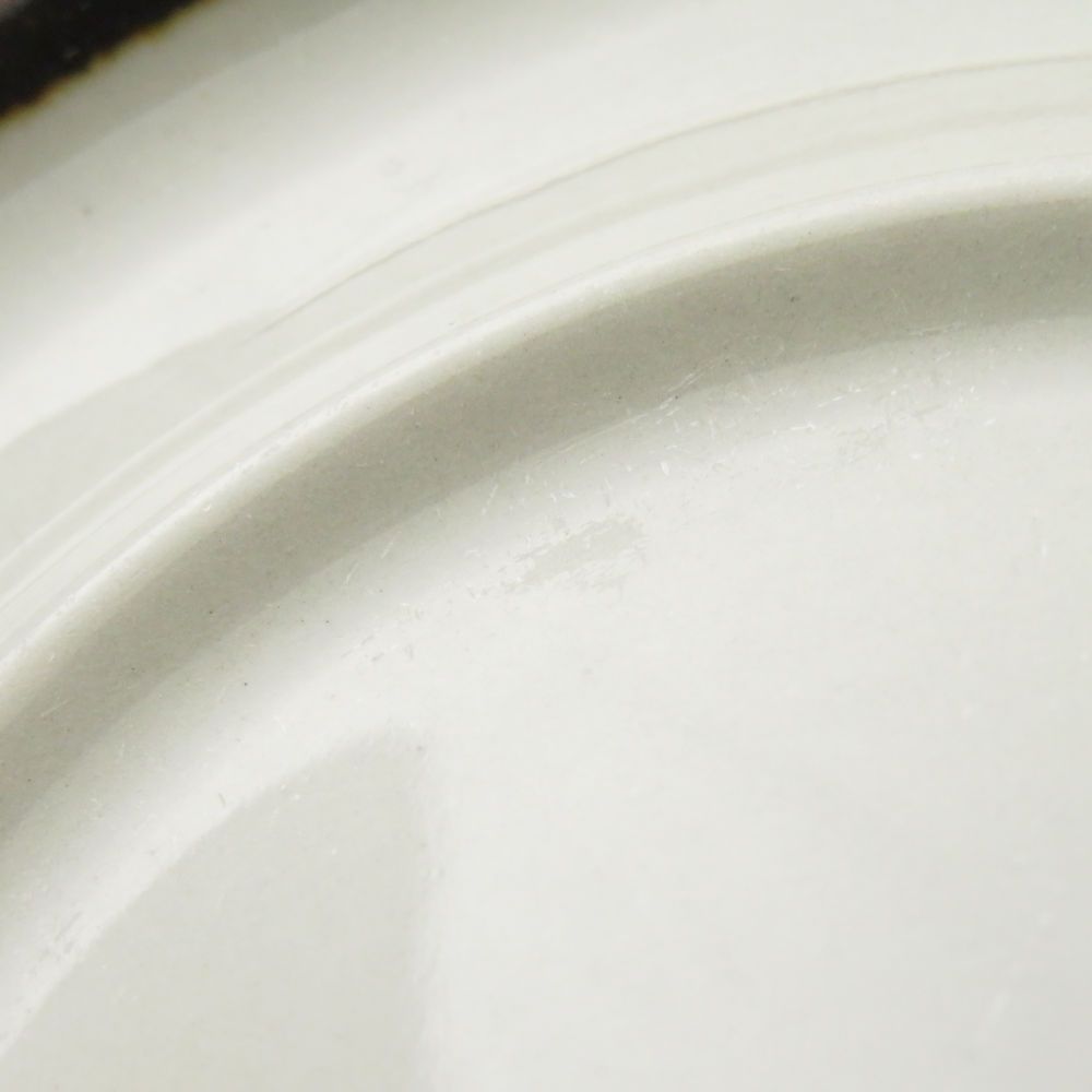 陶磁器の製法上、個体やロットにより重量やサイズ、ピンホール、スタンプの滲み、突起、ざらつき、色とび、黒点、線傷、濃淡がある場合がございますが、こちらは良品の範囲内となり不良商品ではございません。