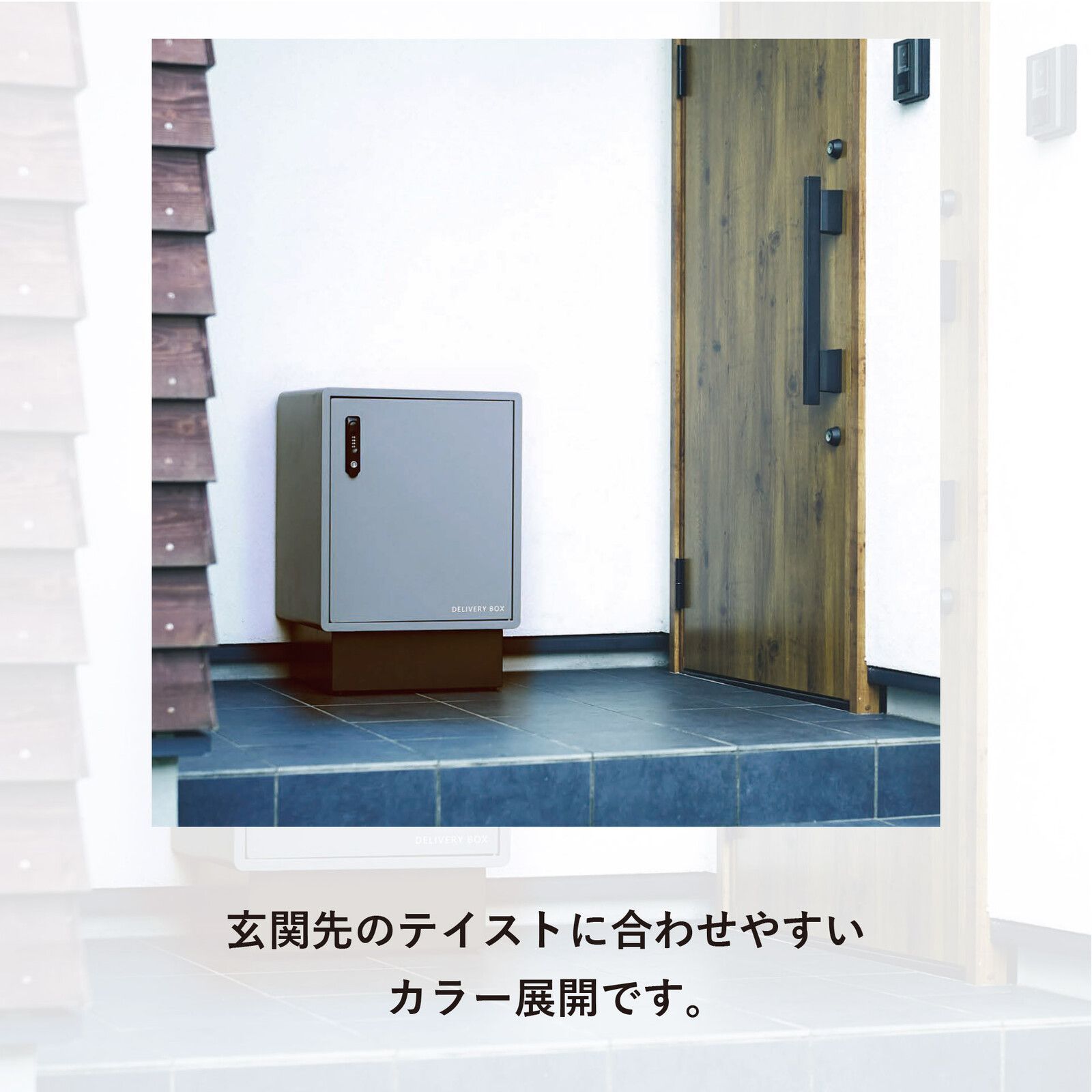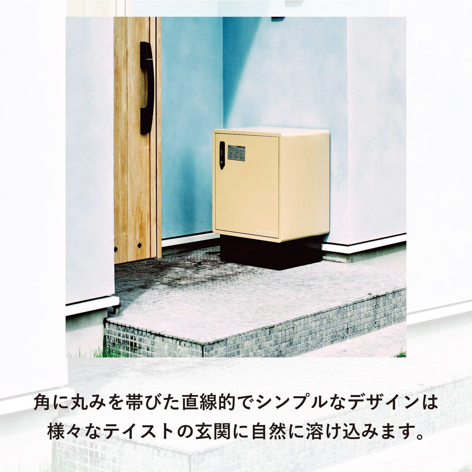 角に丸みを帯びたデザインで、モダンな家屋から様々な玄関先に自然に溶け込む宅配ボックス。
