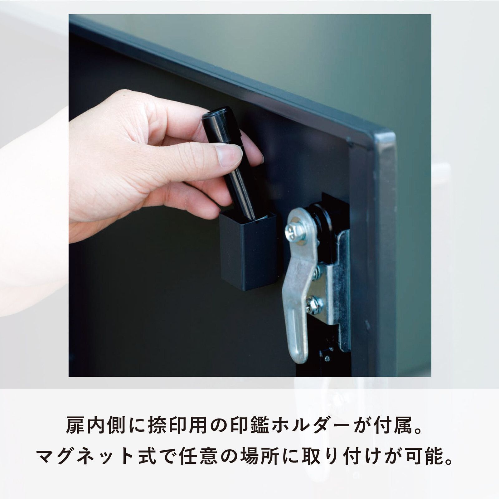 内側に捺印用の印鑑ホルダーが付属。マグネット式で任意の場所に取り付ける事が可能。
