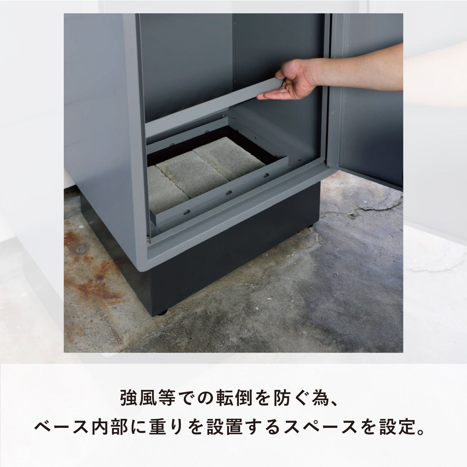 強風等で動いてしまうのを防ぐため、中底にレンガやブロック等の重りが入るスペースを設定。重りは底板でスマートに隠せます。