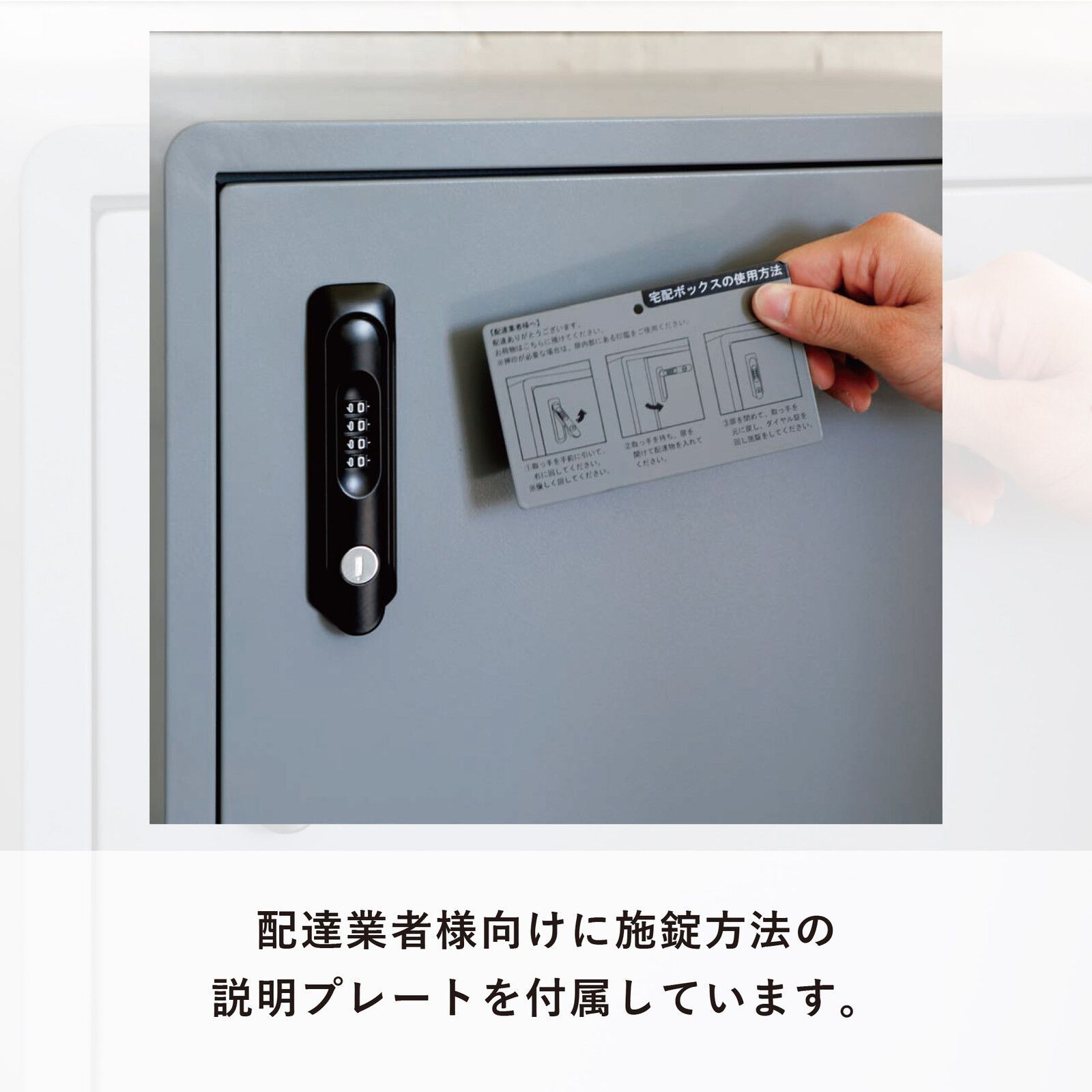 配達業者様向けに施錠方法の説明プレートを付属しています。※プレートの色は全色共通です。