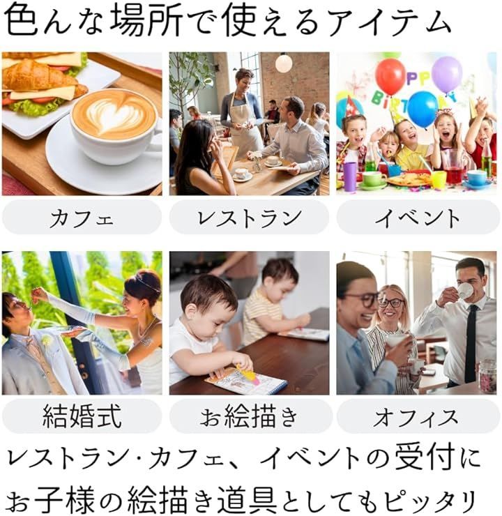 季節のメニューやセールのPOPとして、イベントや結婚式のウェルカムボードにも、お子様用のお絵描きグッズとしてもオススメ。