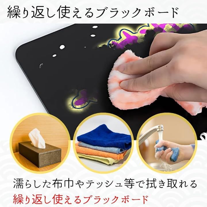 「繰り返し使える」濡らした布巾やテッシュで拭き取れば、繰り返し使えるブラックボード。