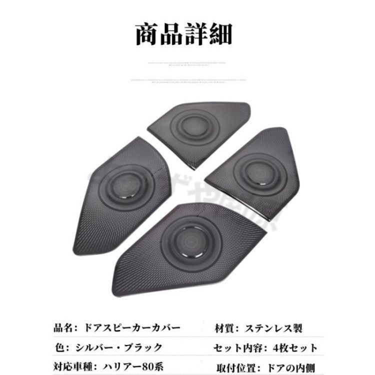 トヨタハリアー80系内装アクセサリーパーツ ドアパネルカバー ドアスピーカーカバー 鏡面仕上げ ステンレス製 ドアスピーカーリング カバー ガーニシュトヨタドアパーツ