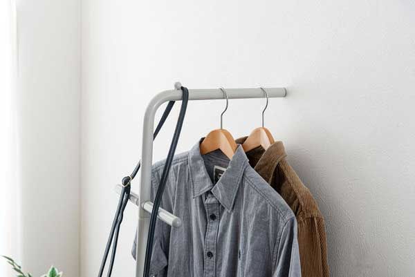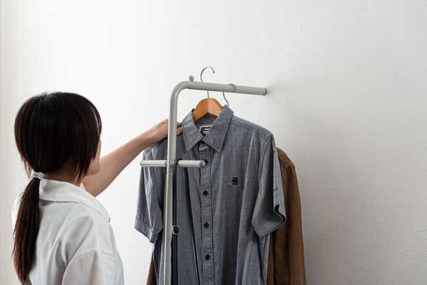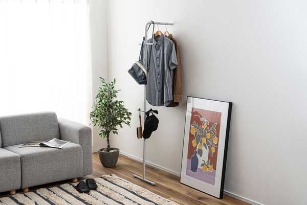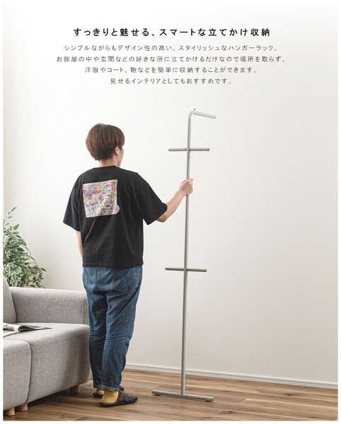 ●お部屋の中や玄関などの好きな所に立てかけるだけなので、場所を取らず洋服やコート、カバンなどを簡単に収納することが可能。
