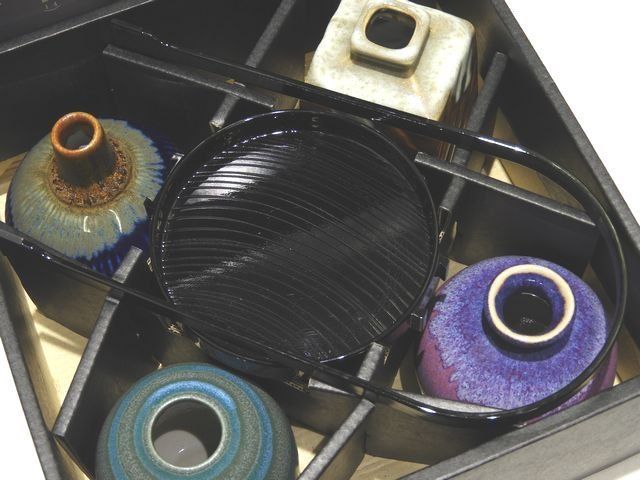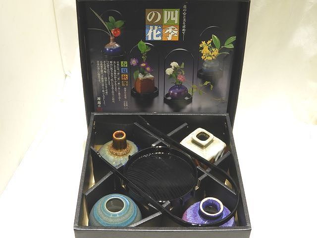 未使用品 瑞陶 作 四季の小花瓶 セット ◇ 一輪挿し 小花瓶 ×4/ 手提盆 ×1 フラワーベース インテリア 陶磁器 ▼7L