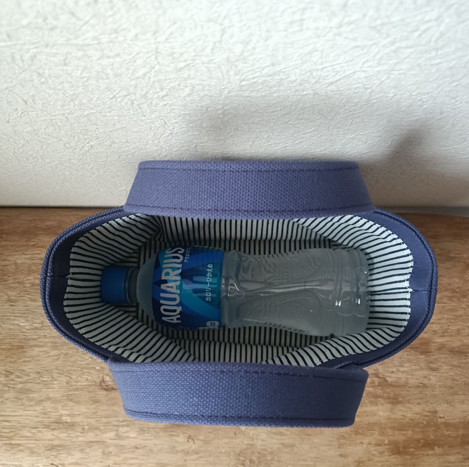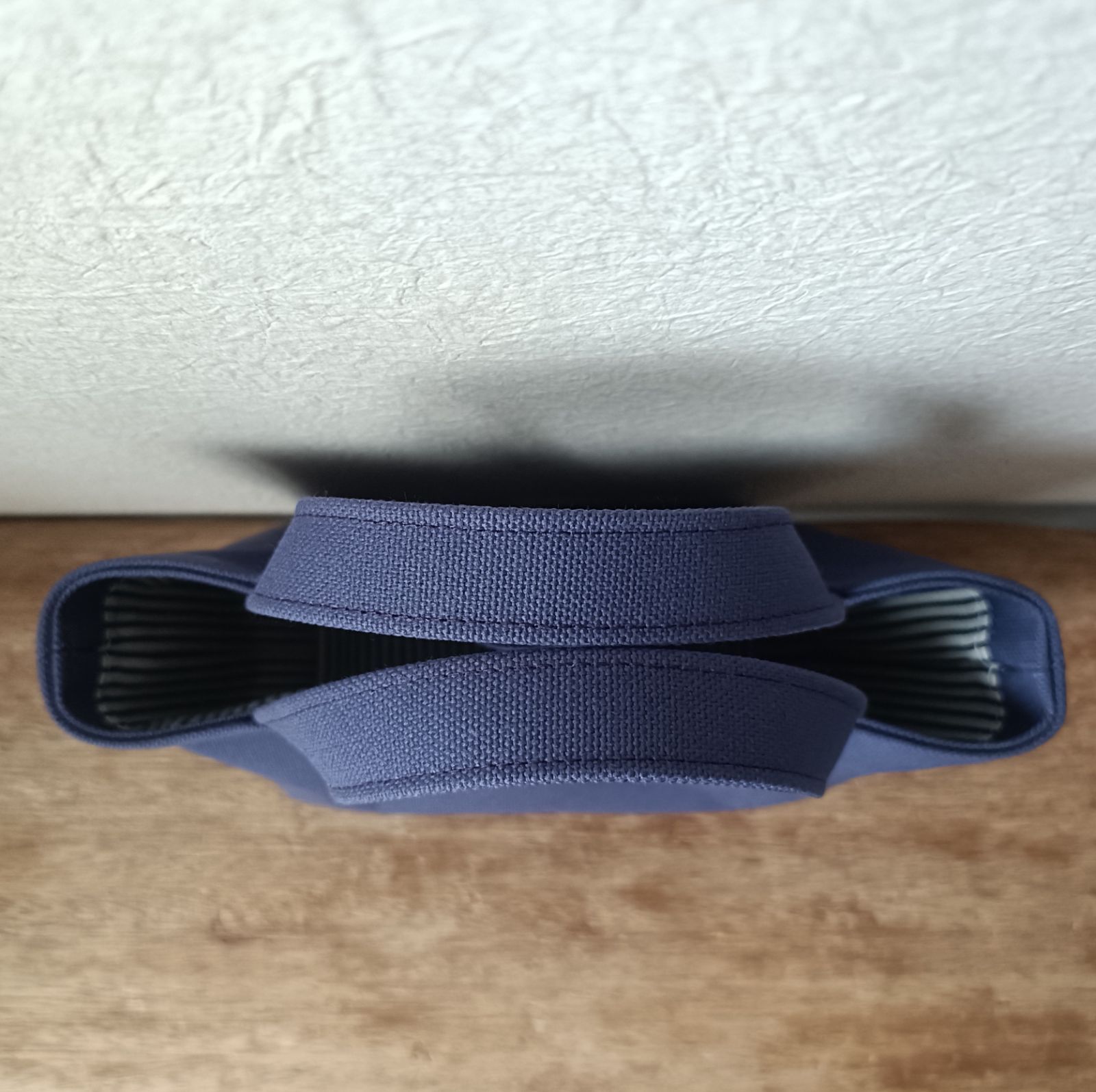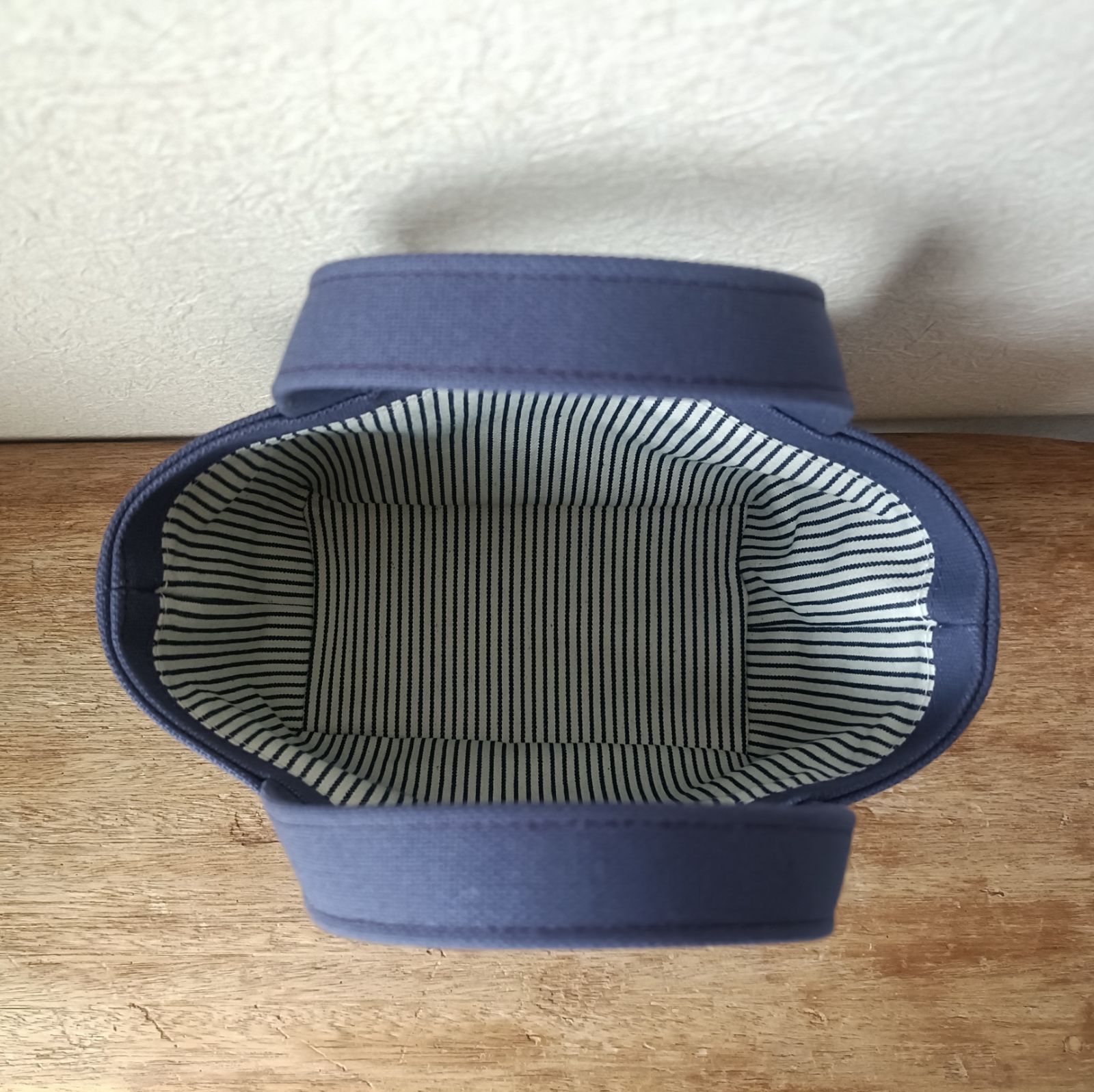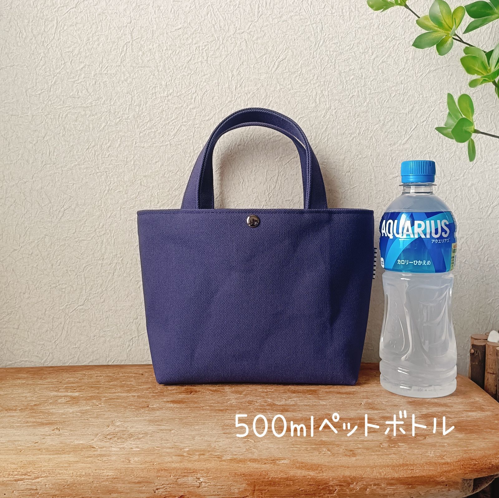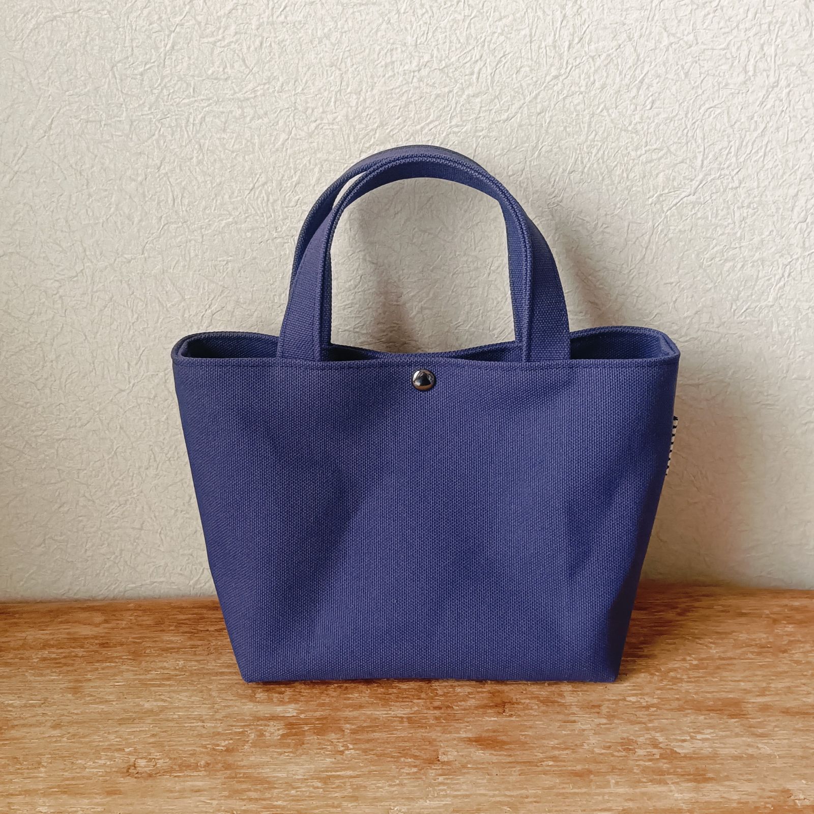 糊付け加工を施した帆布(パープルブルー)を使用していますので、ハリとコシのあるしっかりしたミニトートになっています。弱撥水効果もあり頑丈です。使い込めば、少しずつ柔らかくなり馴染んできます。