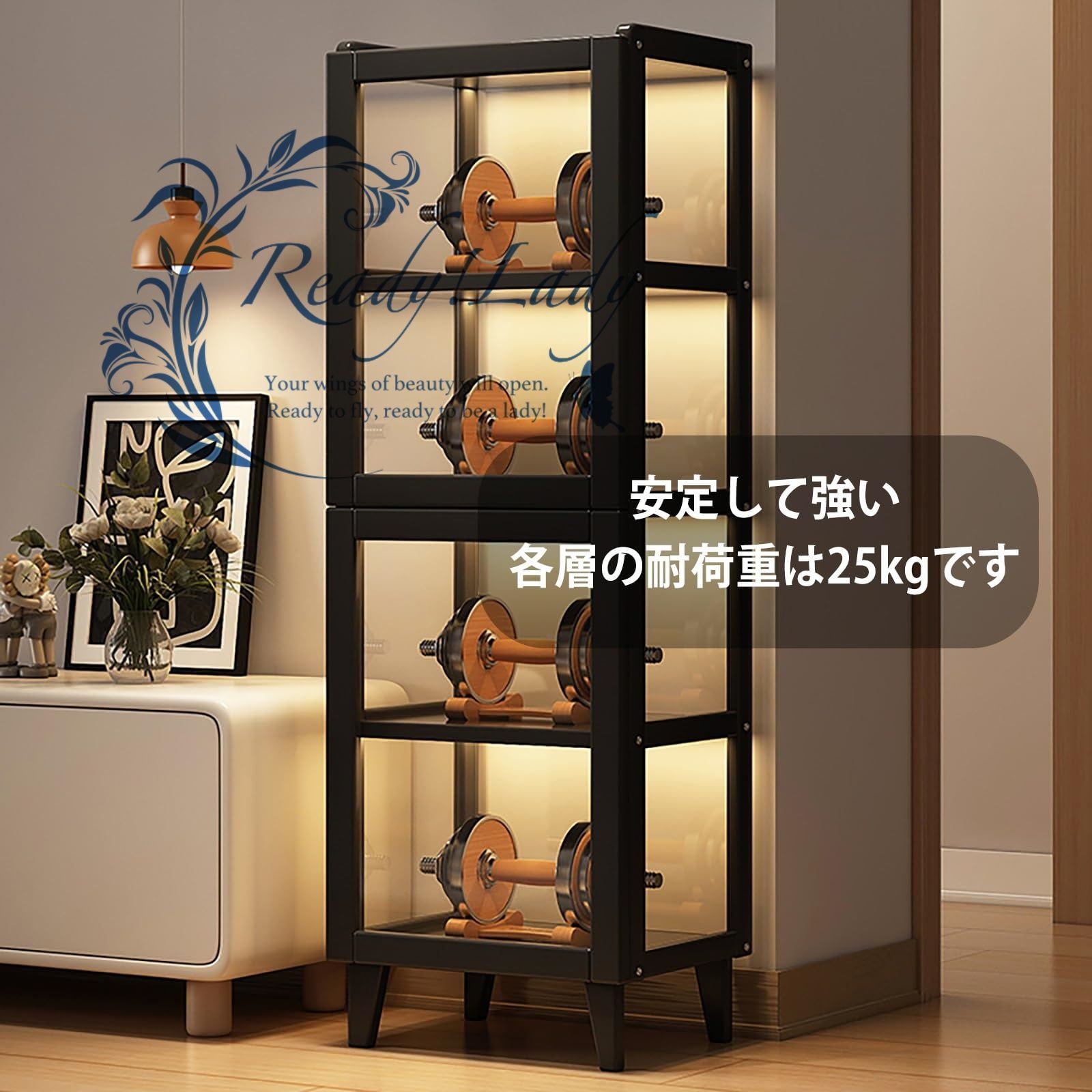 【大容量ディスプレイキャビネット】ディスプレイキャビネットには、お気に入りのアイテムを保管するための複数の層の収納があります。複数の収納機能を備えた大容量の多層ディスプレイキャビネット。