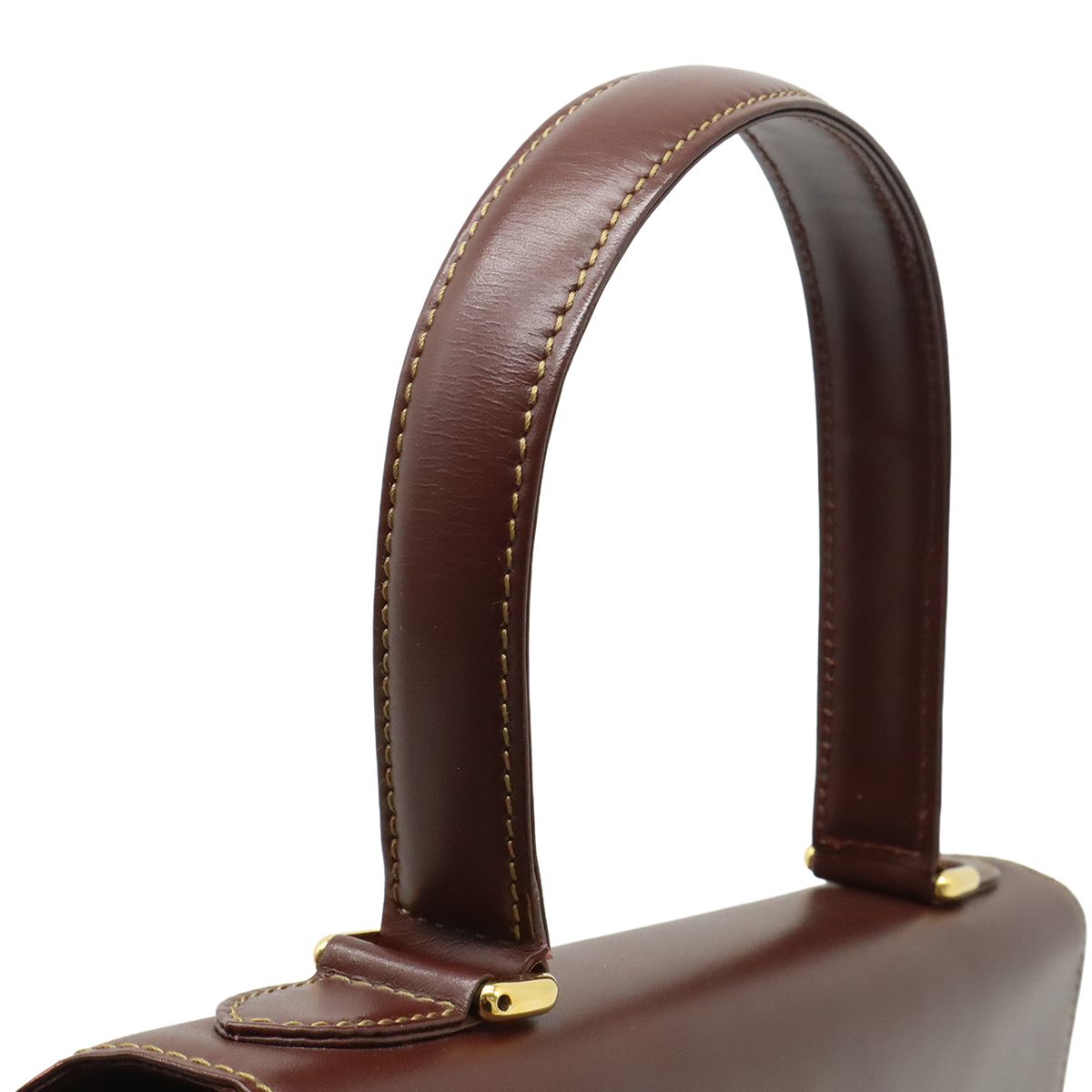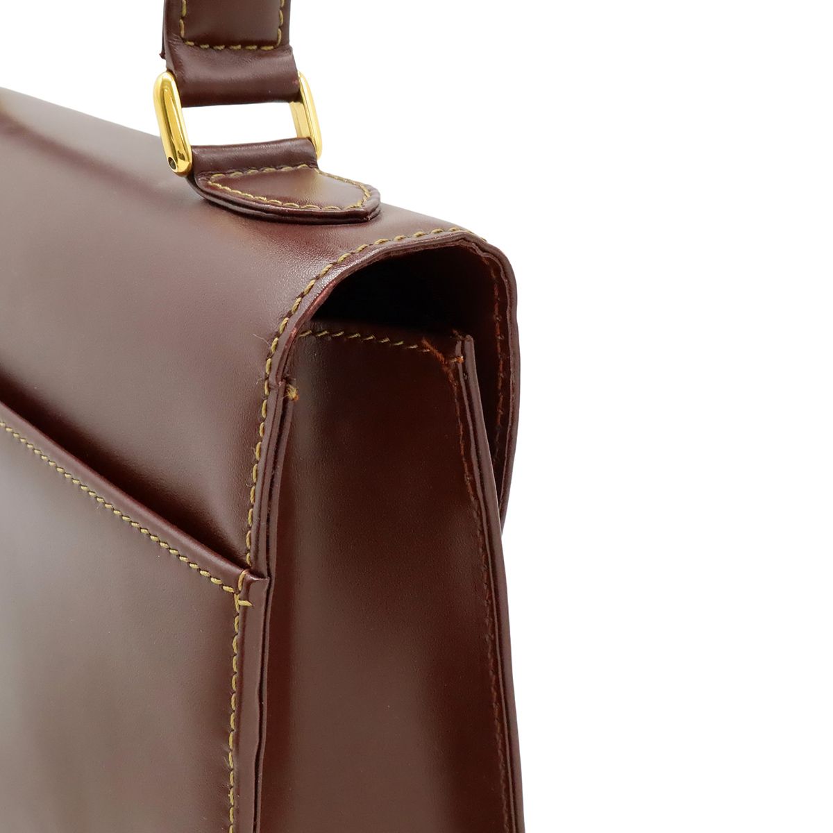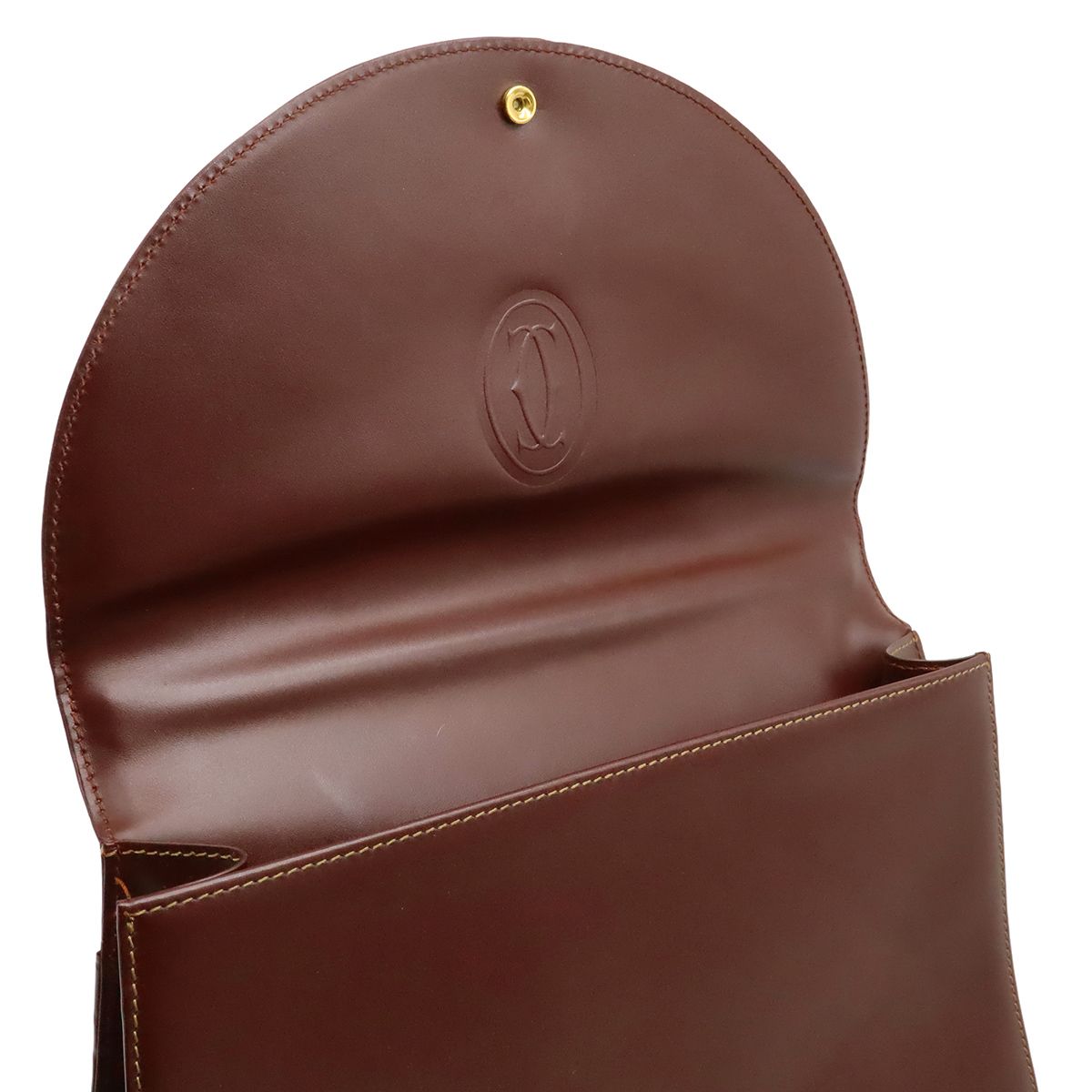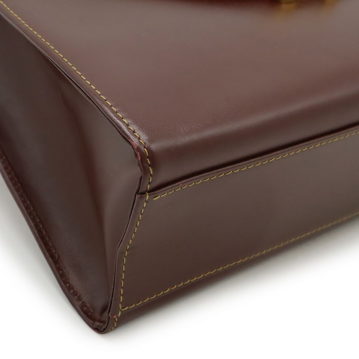 カルティエらしいボルドーカラーが上品で高級感溢れるハンドバッグでございます。