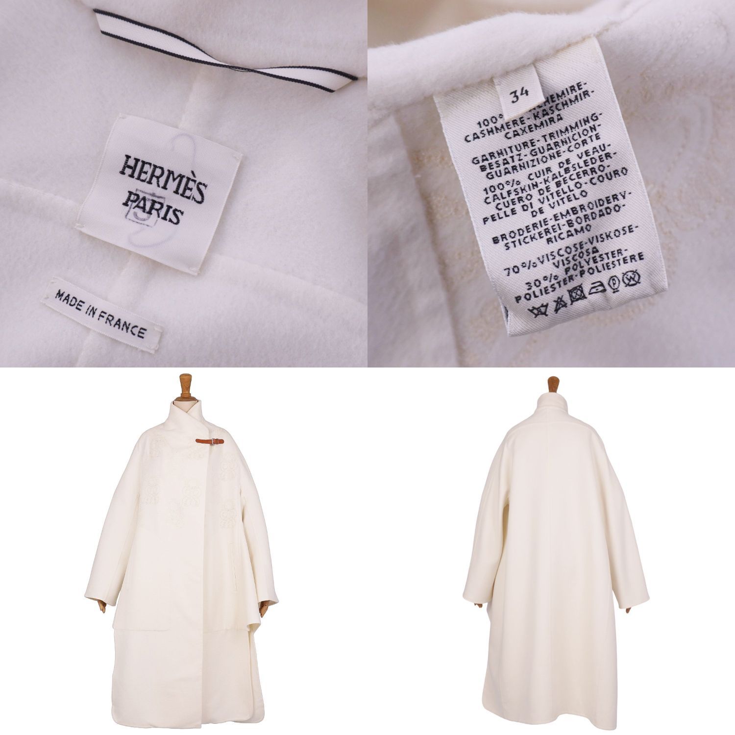 極美品 エルメス HERMES コート ロングコート ラップコート カシミヤ100% ダブルフェイス アウター レディース 34(XS)