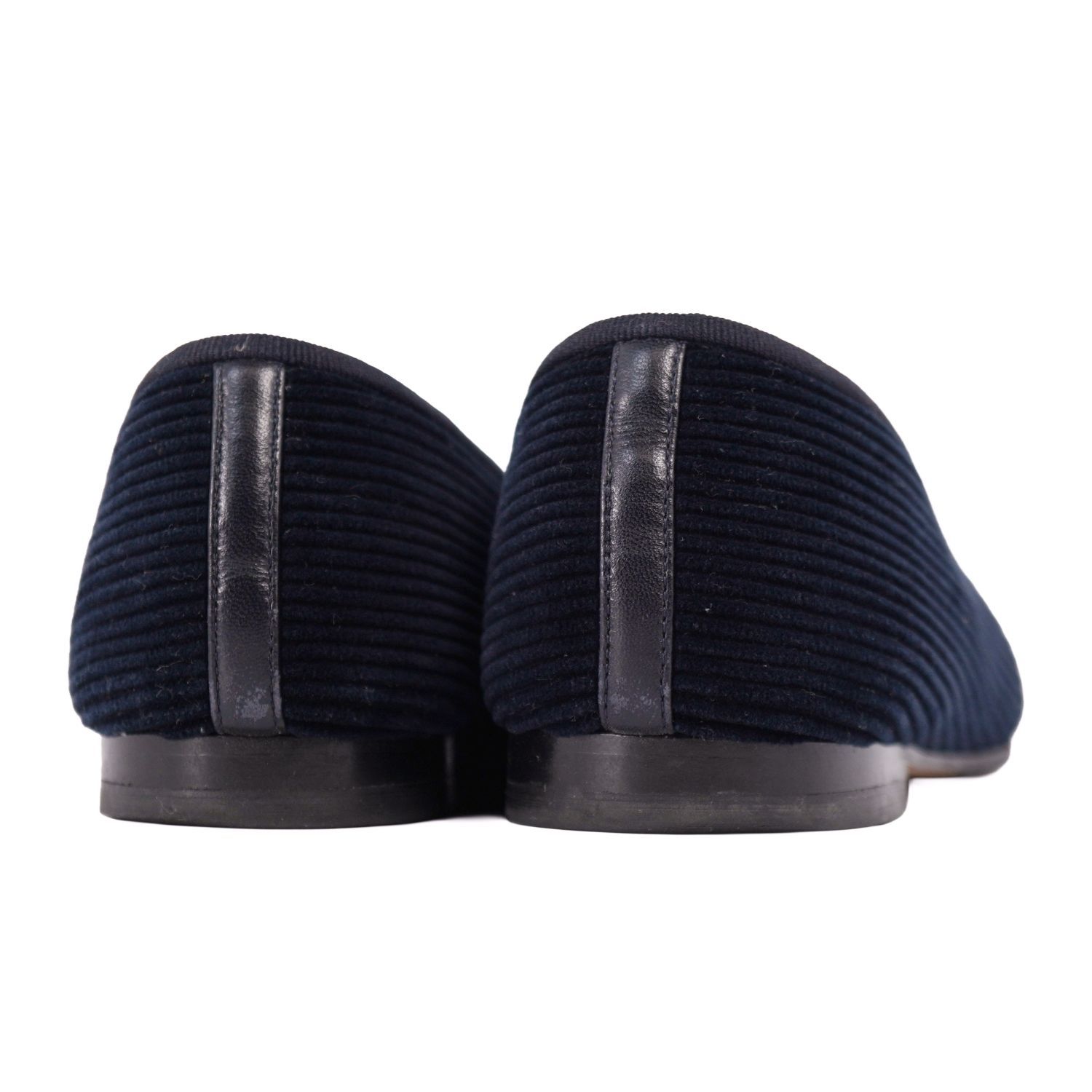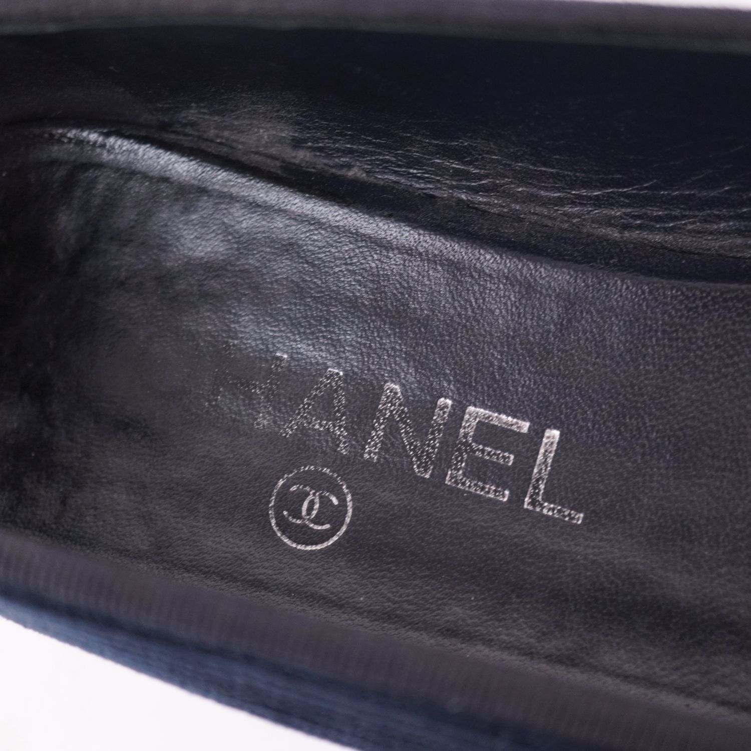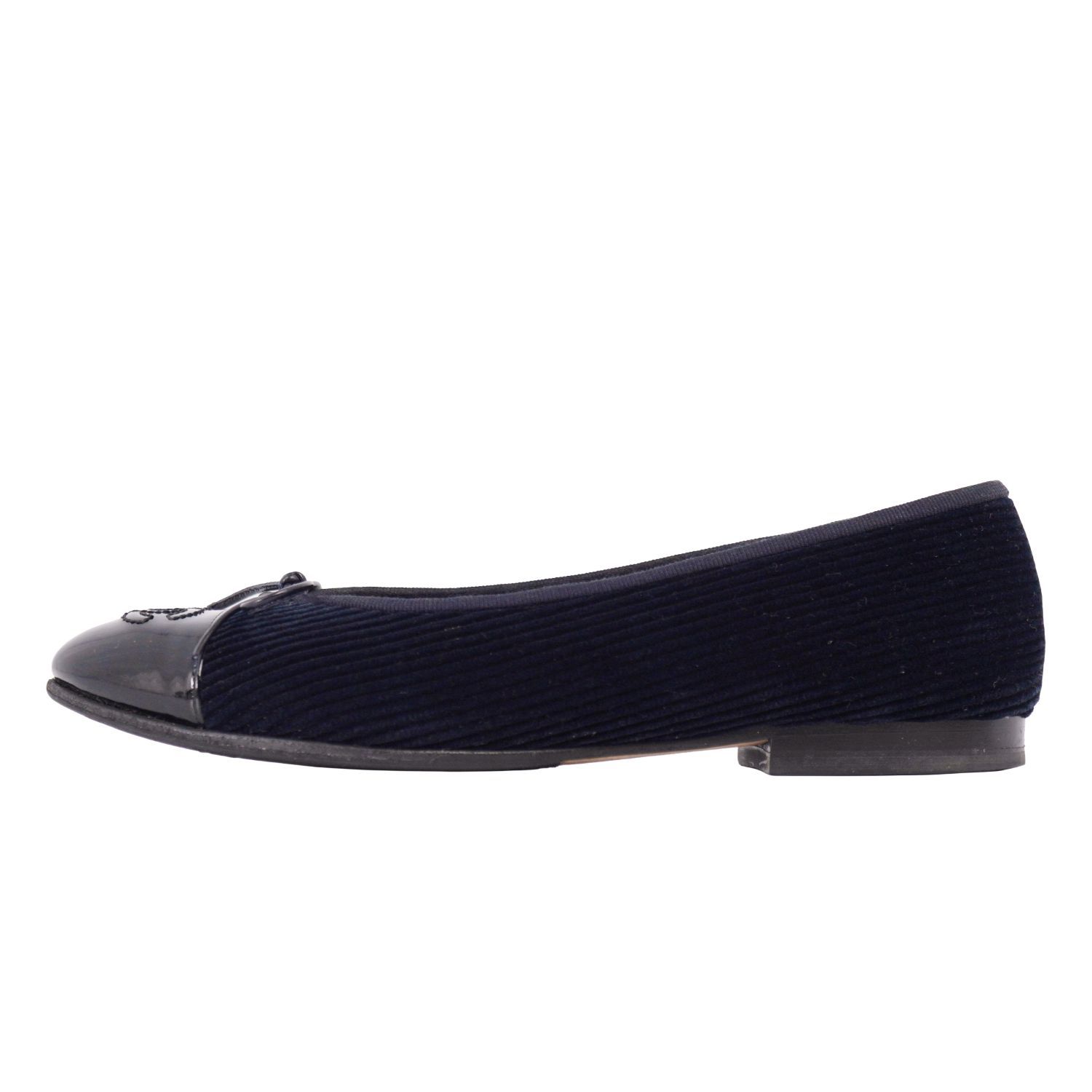 美品 シャネル CHANEL G02819 フラットパンプス キャップトゥ ココマーク リボン コーデュロイ シューズ 靴 36.5C