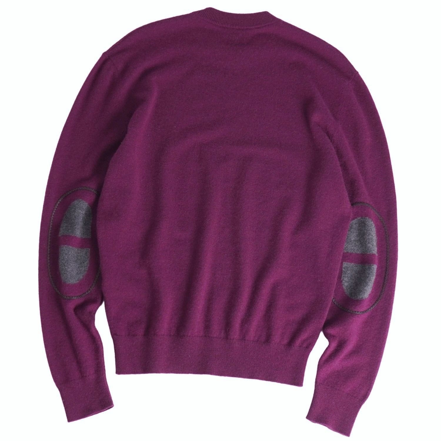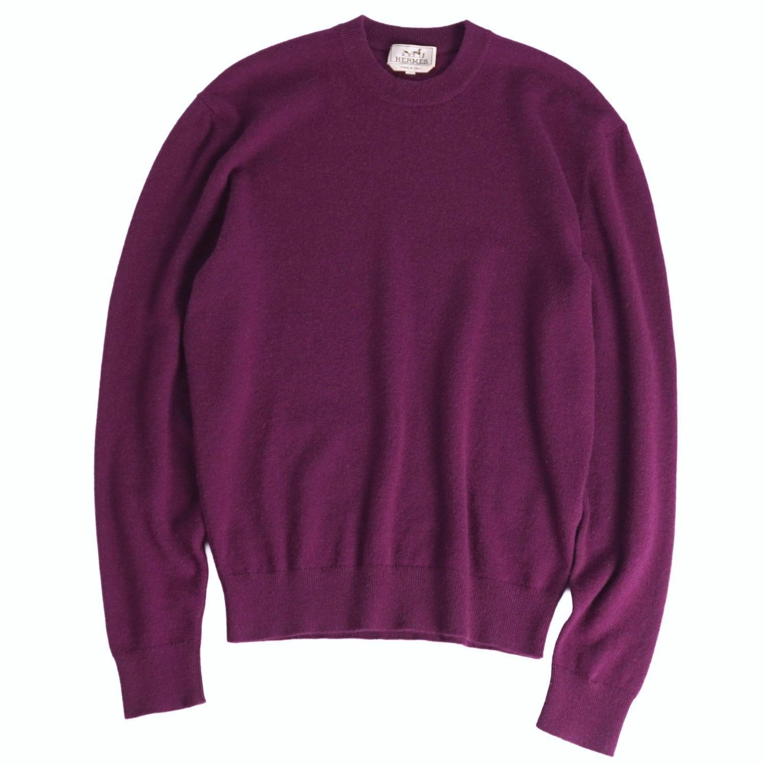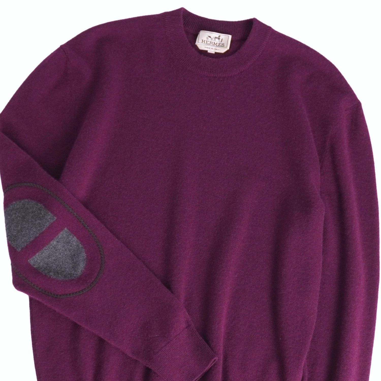 極美品 エルメス HERMES 23AW ニット セーター クルーネック マイヨン シェーヌダンクル カシミヤ レザー トップス S 紫