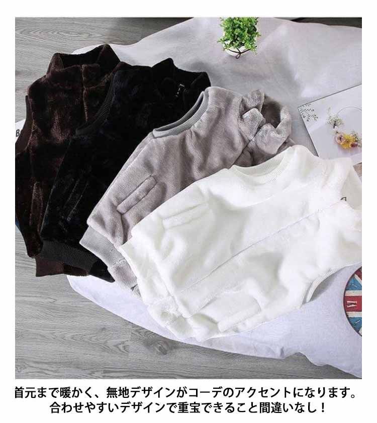 秋口の肌寒い季節の一枚はもちろん、冬のアウターの下にインして、ボアの質感をちらりと覗かせる着こなしもおすすめ。もちろん、快適なルームウェアとしてもご利用いただけます。