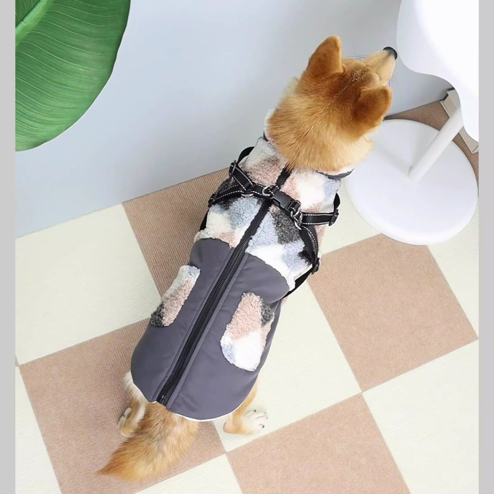 冬の寒さから愛犬を守る、背中開きハーネスウェアーです。