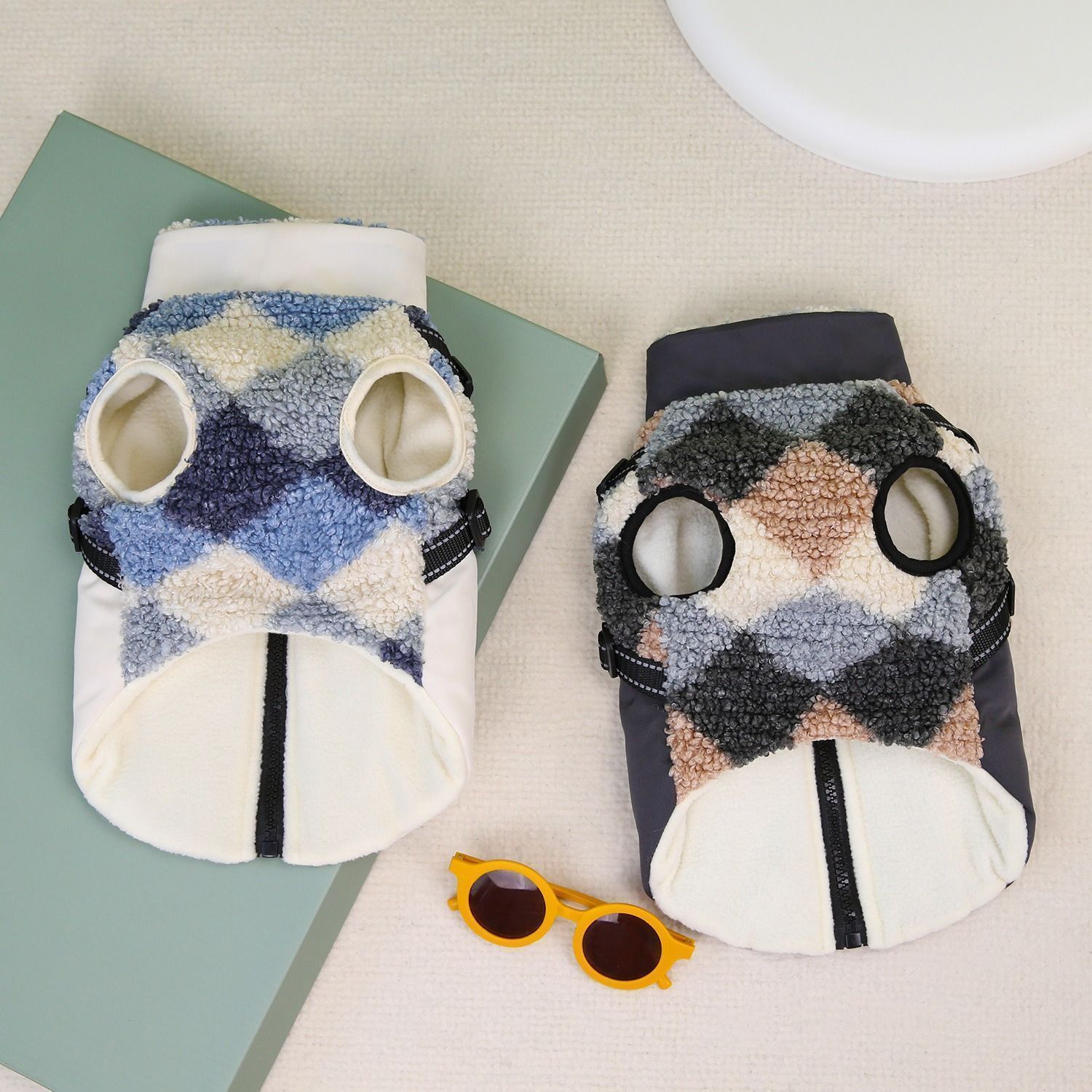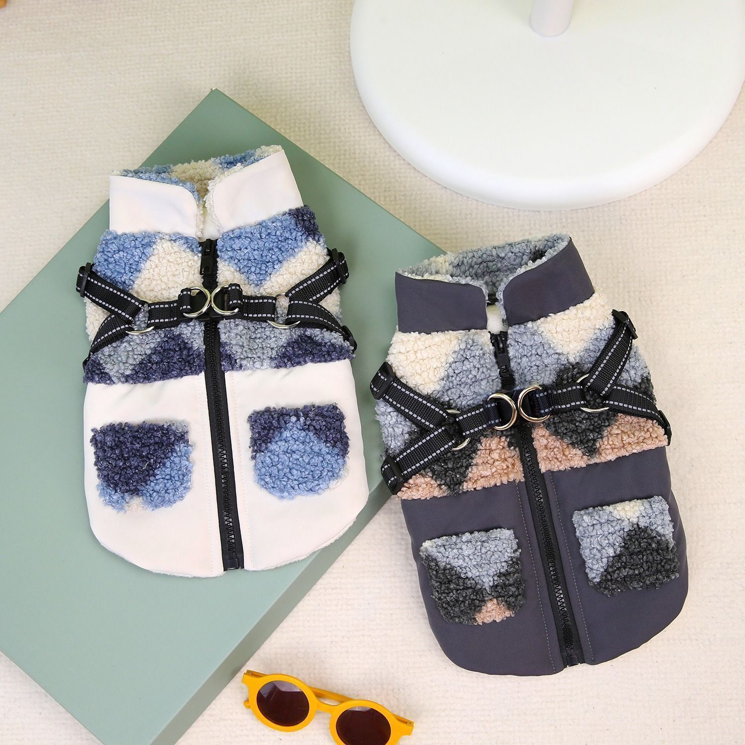 小型犬にぴったりのこのアウターは、暖かい裏起毛と中綿入りで、寒い秋冬のお出掛けやお散歩に最適です。