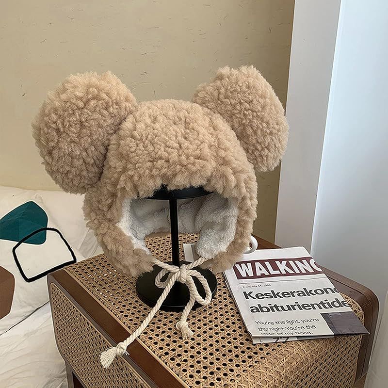 商品名:パイロット帽子 ロシア帽 レディースハット ボア付き 裏起毛 ふわふわ帽子 耳当て付きキャップ くま 韓国風 飛行帽 小顔効果 可愛い 着ぐるみ帽子 秋冬 防風 防寒帽子 通学 旅行 スキー スノーボ 雪遊び 登山 外出 寒さ対策