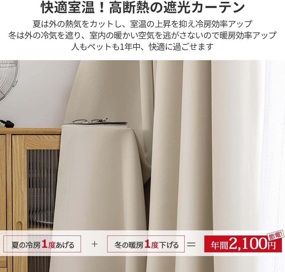 ※ 遮光カーテンのため、室内が暗くなりすぎる場合があります。