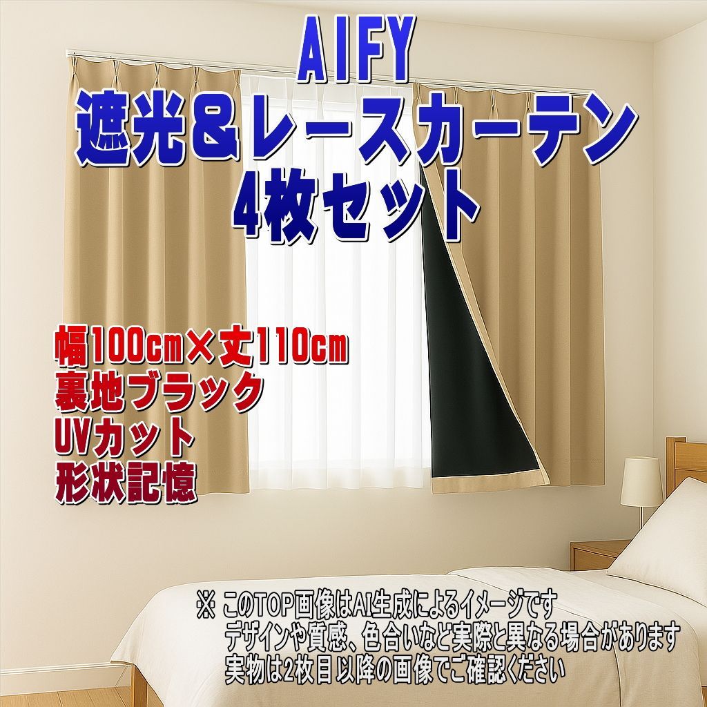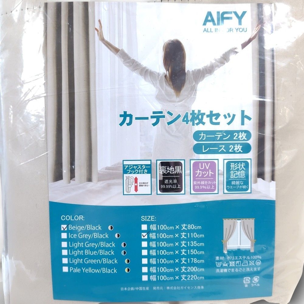 AIFYの裏地黒タイプ遮光カーテン4枚セット(100×110cm)です。