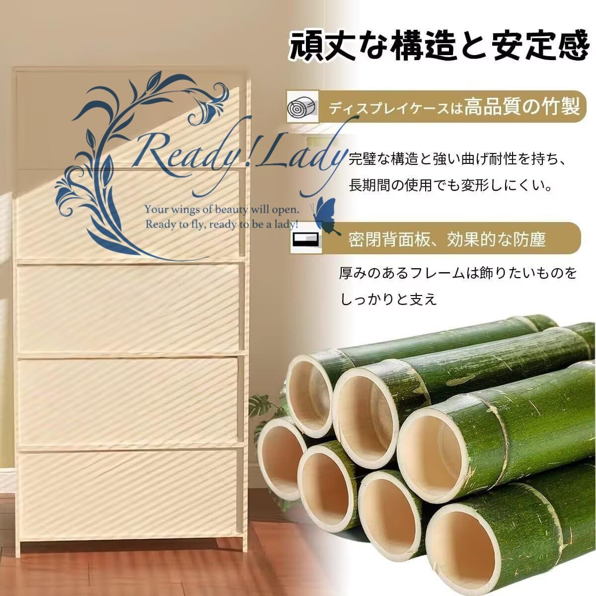 🍭【頑丈な構造と安定感】ディスプレイケースは高品質の竹製で、完璧な構造と強い曲げ耐性を持ち、長期間の使用でも変形しにくい。厚みのあるフレームは飾りたいものをしっかりと支え、立体感と奥行きを生み出します。
