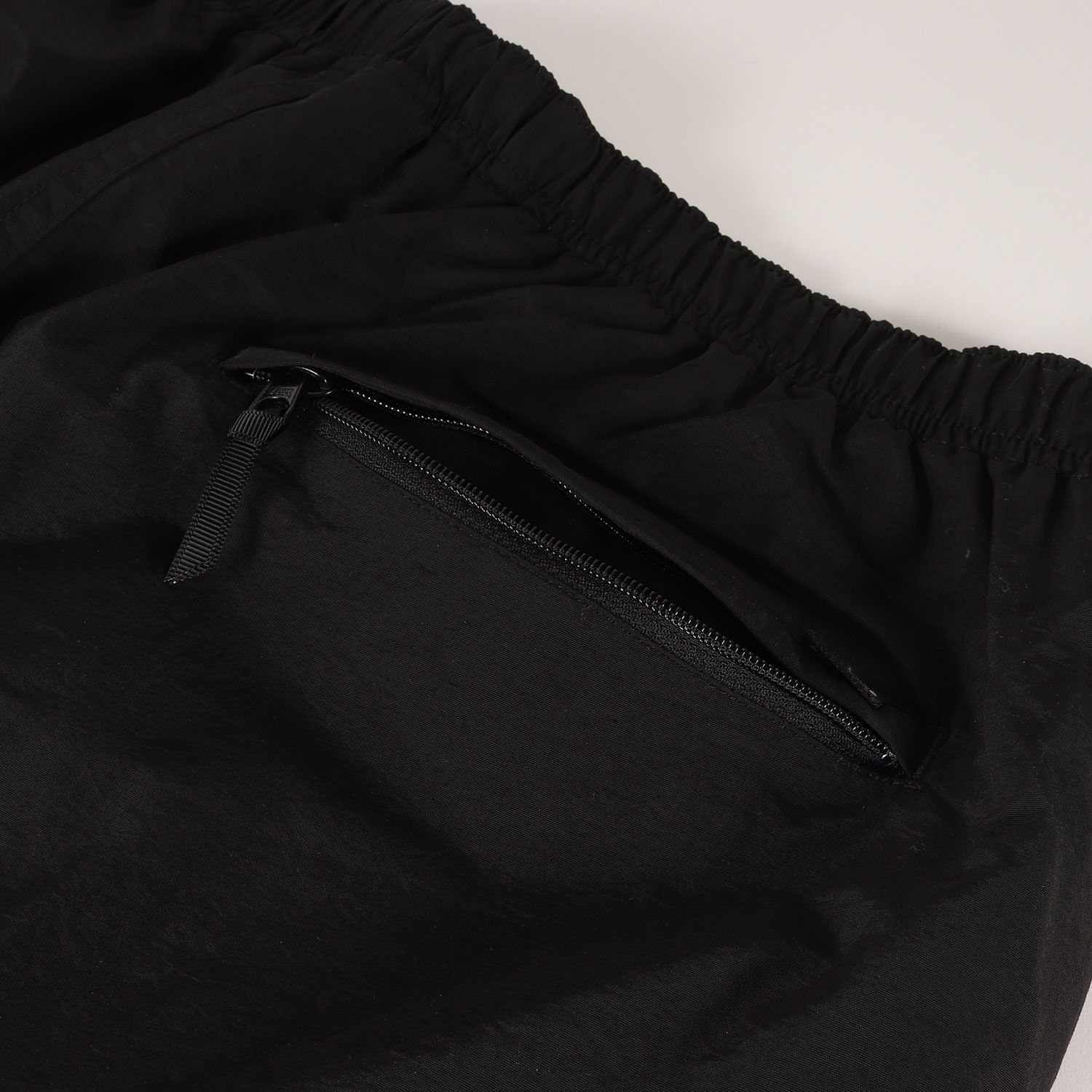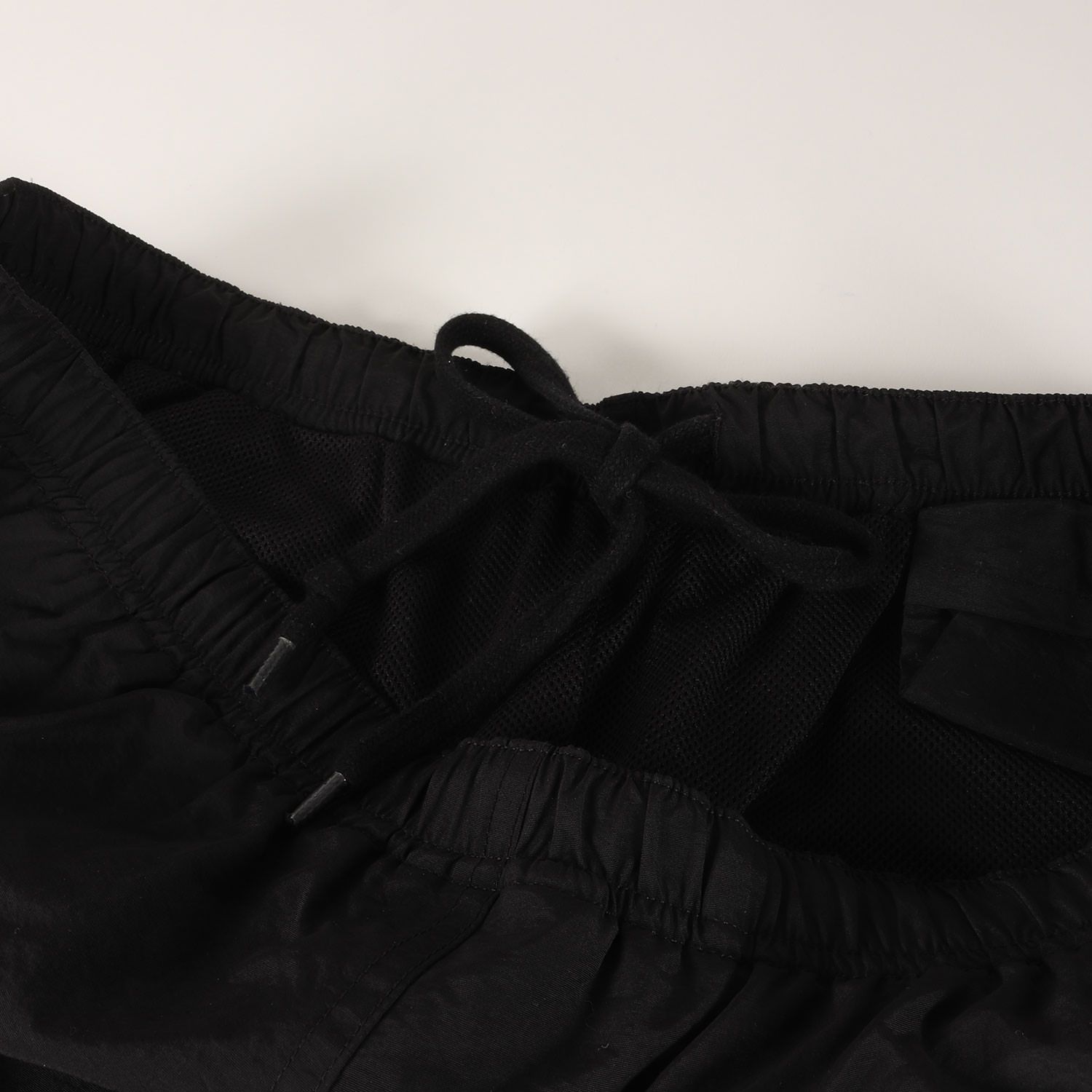 シャリ感のあるナイロン素材を使用し、右裾にアーチロゴ刺繍をあしらった裏地メッシュ付きのトラックパンツになります。
