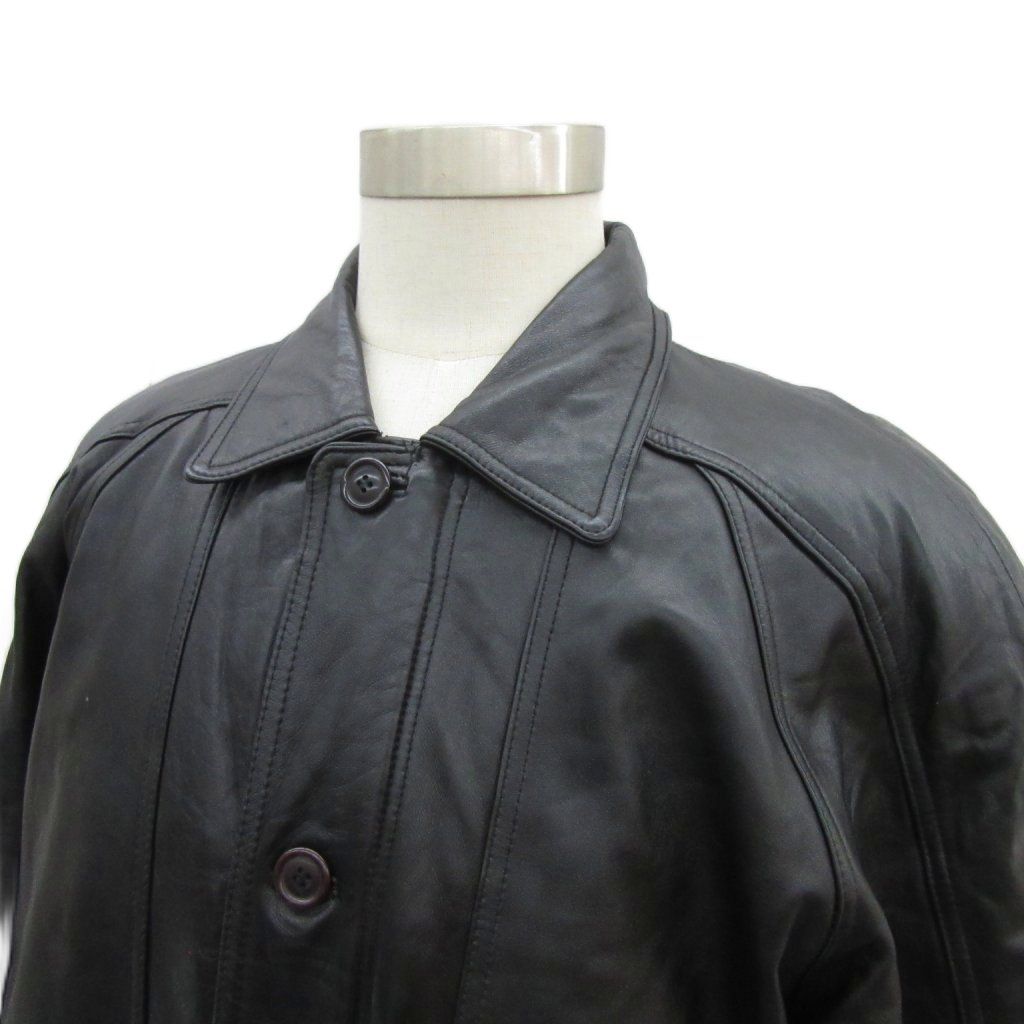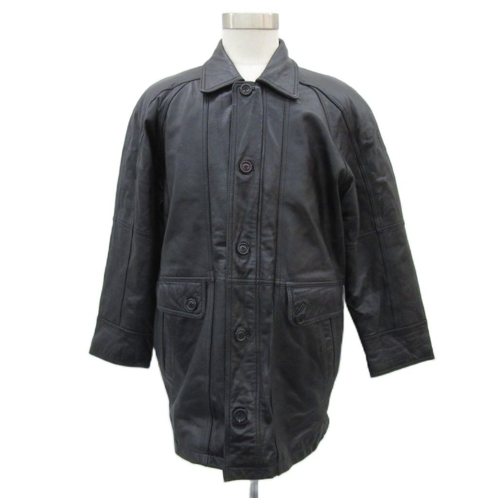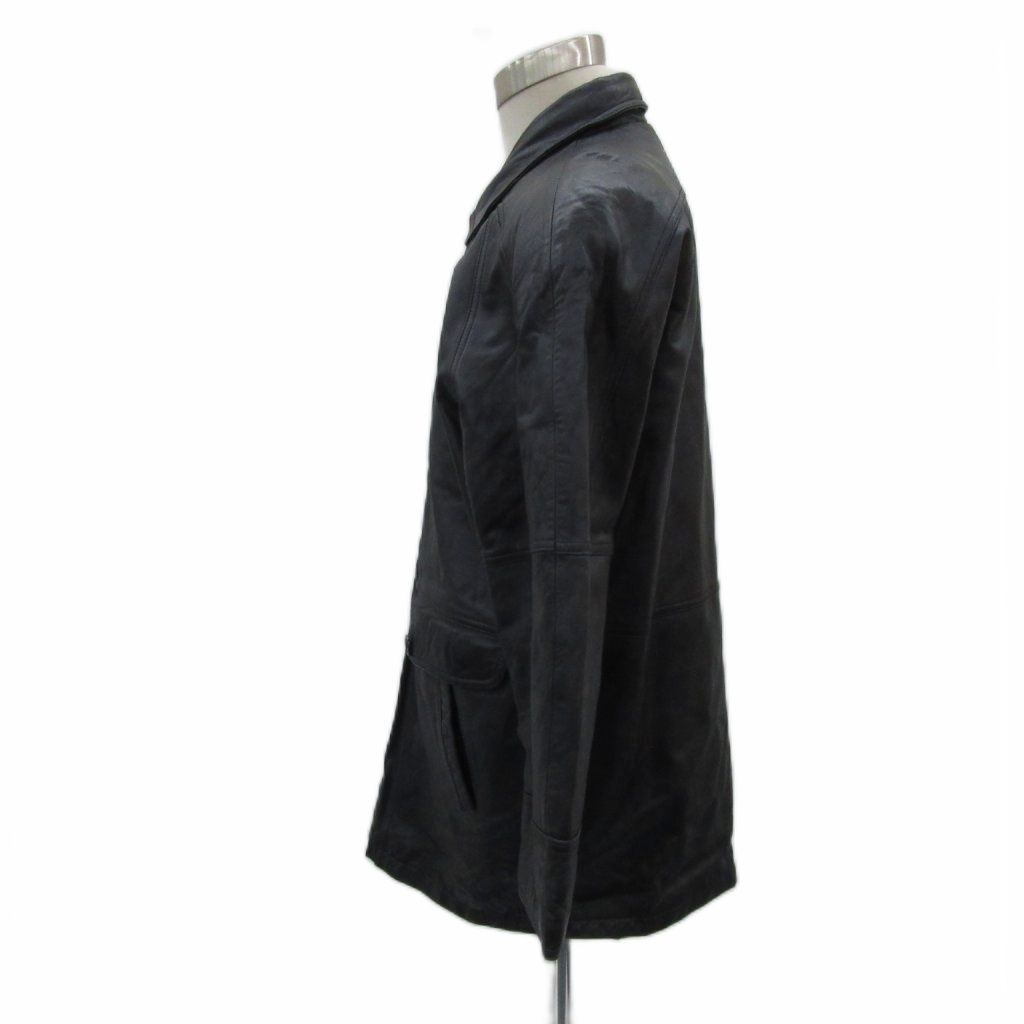 【商品名】REALEZA シープレザージャケット 革ジャン L 黒 ブラック ステンカラー ミドル丈 /YS26 ■GY58