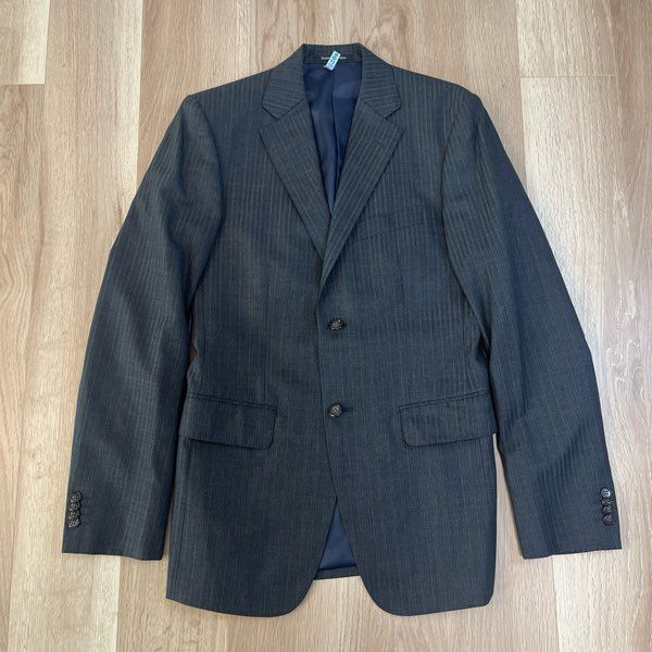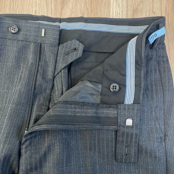 【商品名】テーラードジャケット・スラックス スーツセットアップ ウール ストライプ B92・W83 おまけ他ブランドベスト付き