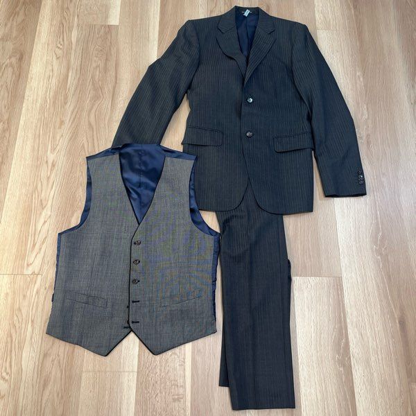 ベストにはシミ汚れありますが、ジャケット・スラックスは美品になります。