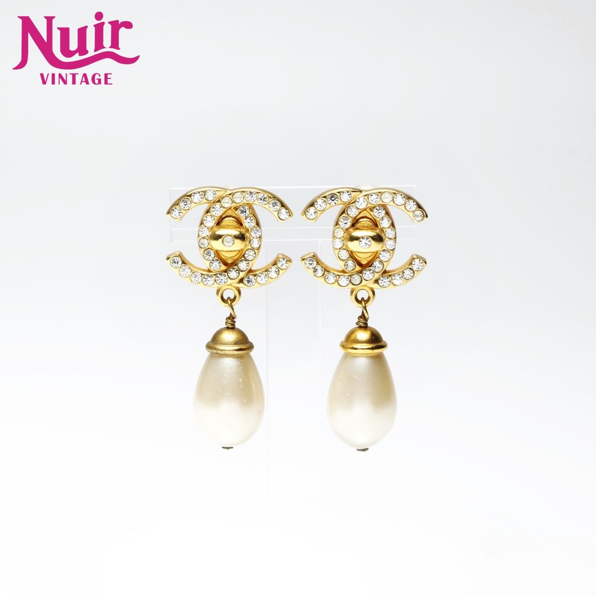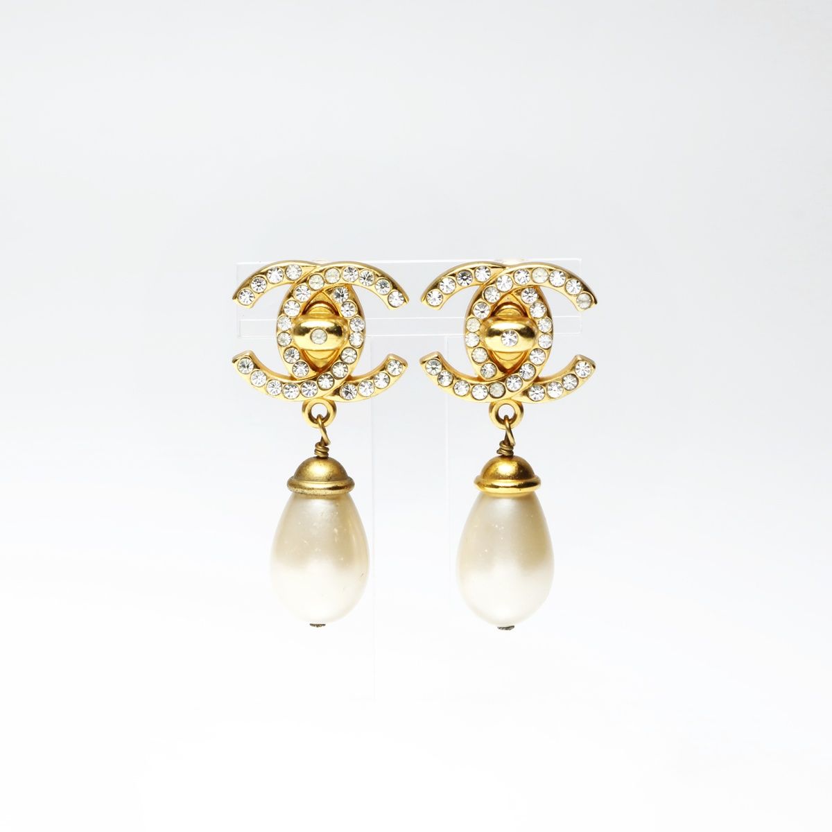 CHANEL シャネル イヤリング 96A 1996 ココマーク ラインストーン パール【中古】