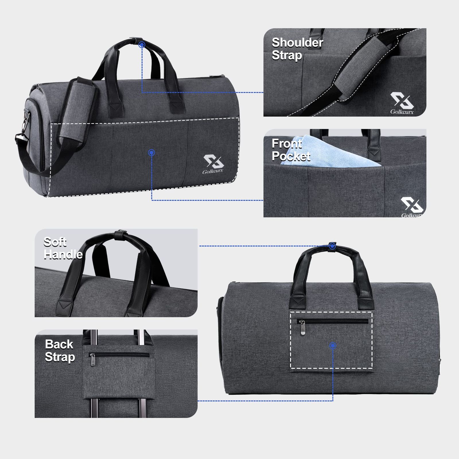 旅行用のコンバーチブルガーメントバッグ、シューズコンパートメント付きキャリーオンガーメントダッフルバッグ、取り外し可能なショルダーストラップ-2イン1スーツバッグスーツトラベルバッグ