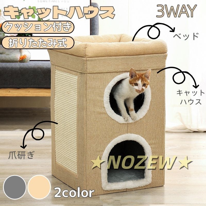 3in1:キャットハウス+ベッド+爪研ぎ