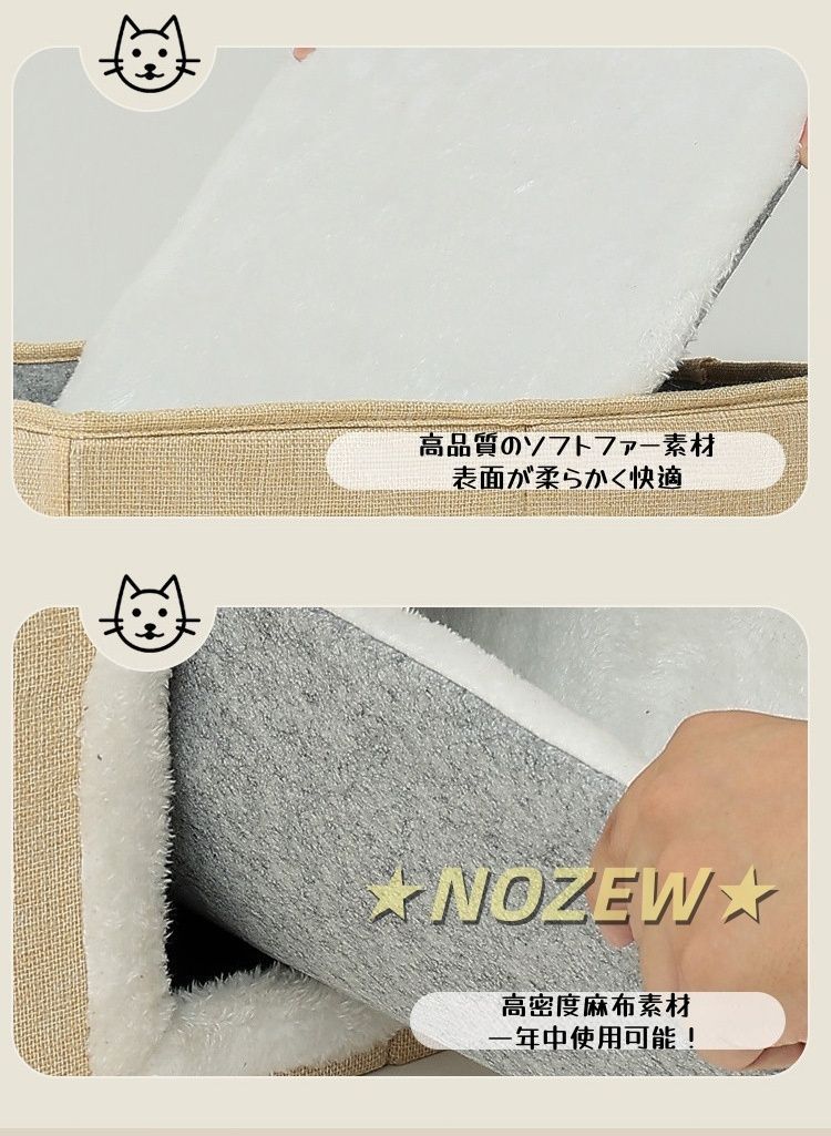 猫ハウスは広い入口があり、猫ちゃんの出入りがとても簡単です。また、クッションが取り外せる構造を使用しており、暑い夏には暑さ対策のひんやりペットマットを置いて夏用猫ベッドとして使えます。クッションを取り外して洗濯でき、常に綺麗な環境を維持すると、猫は元気に成長できます。